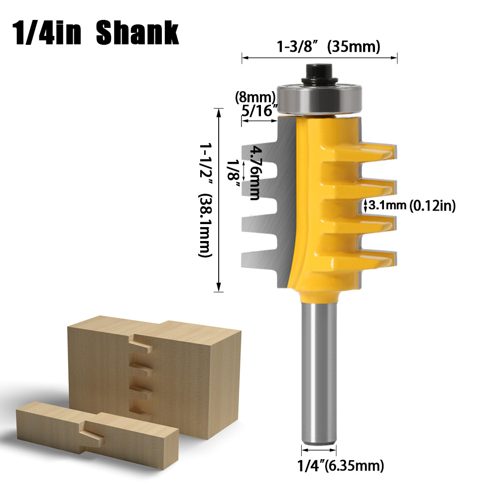 The router bit ensures accurate and clean cuts, perfect for creating intricate designs and joining wood seamlessly.