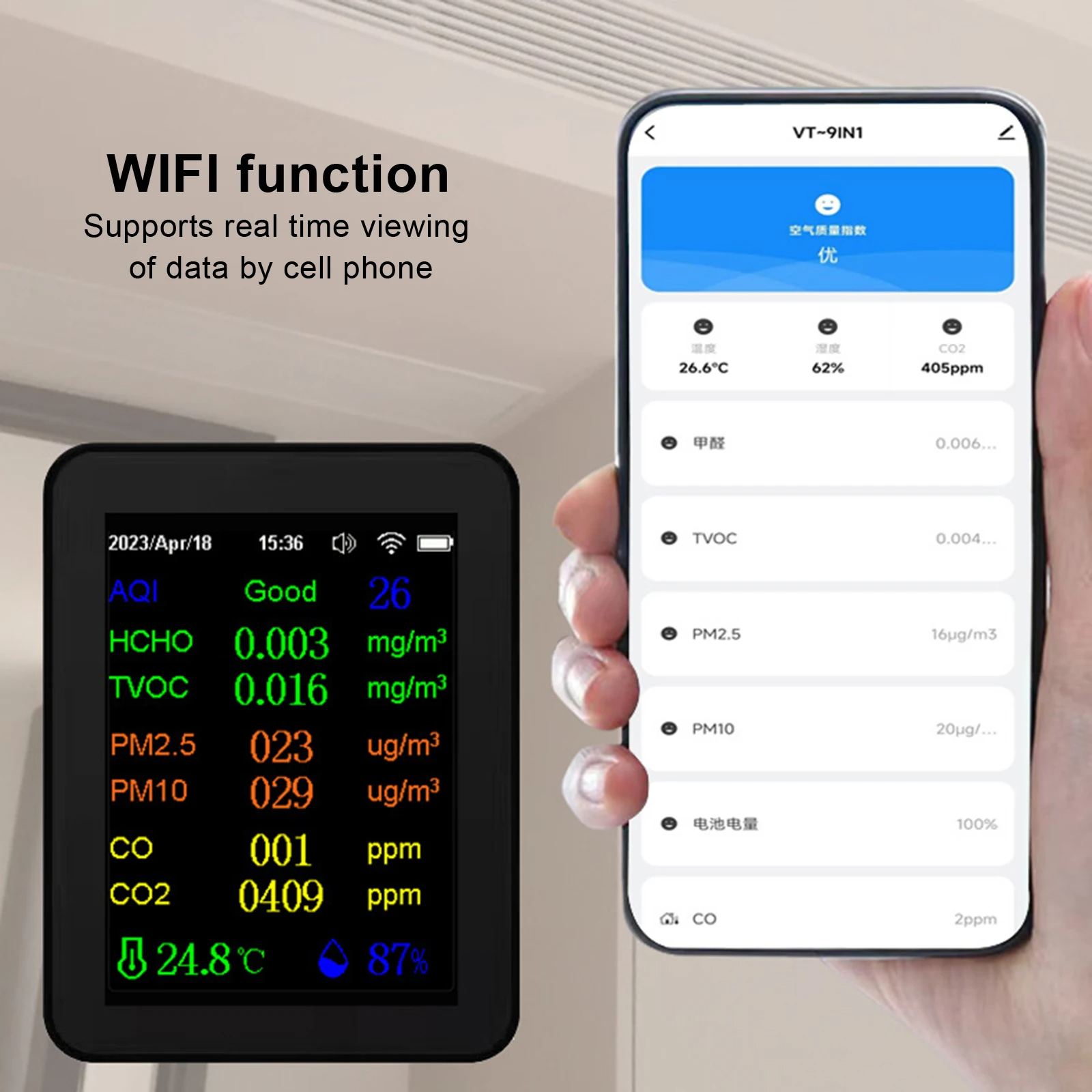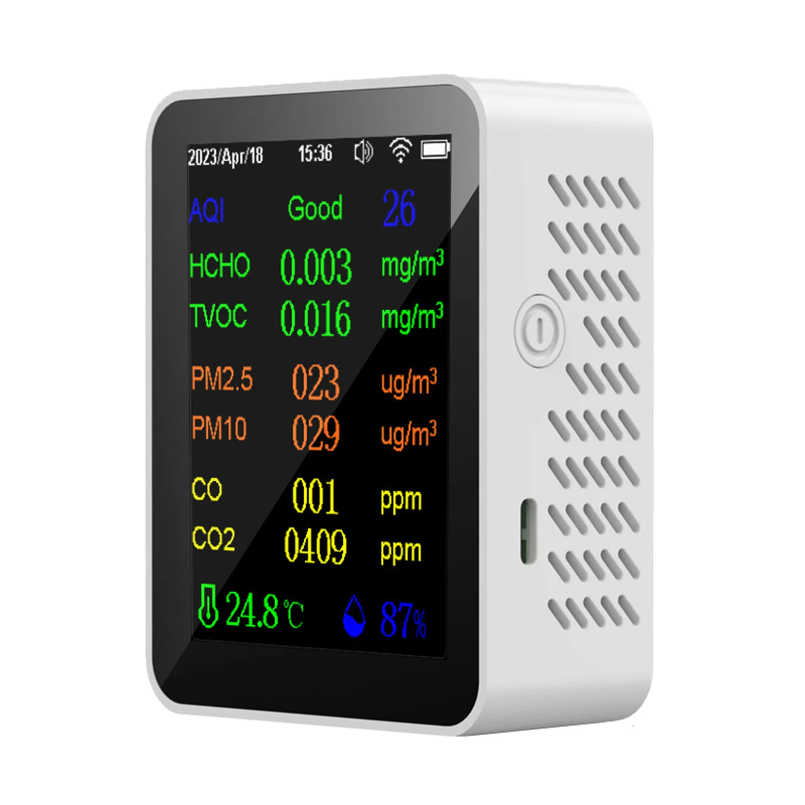 mso-bidi-font-family:'Times New Roman';font-size:10.5000pt;mso-font-kerning:1.0000pt;'>The multi-functional monitor tracks 12 vital parameters, including AQI, HCHO, TVOC, PM2.5, PM10, CO, CO2, temperature, and humidity, presenting a comprehensive overview of the environment.mso-bidi-font-family:'Times New Roman';font-size:10.5000pt;mso-font-kerning:1.0000pt;'>