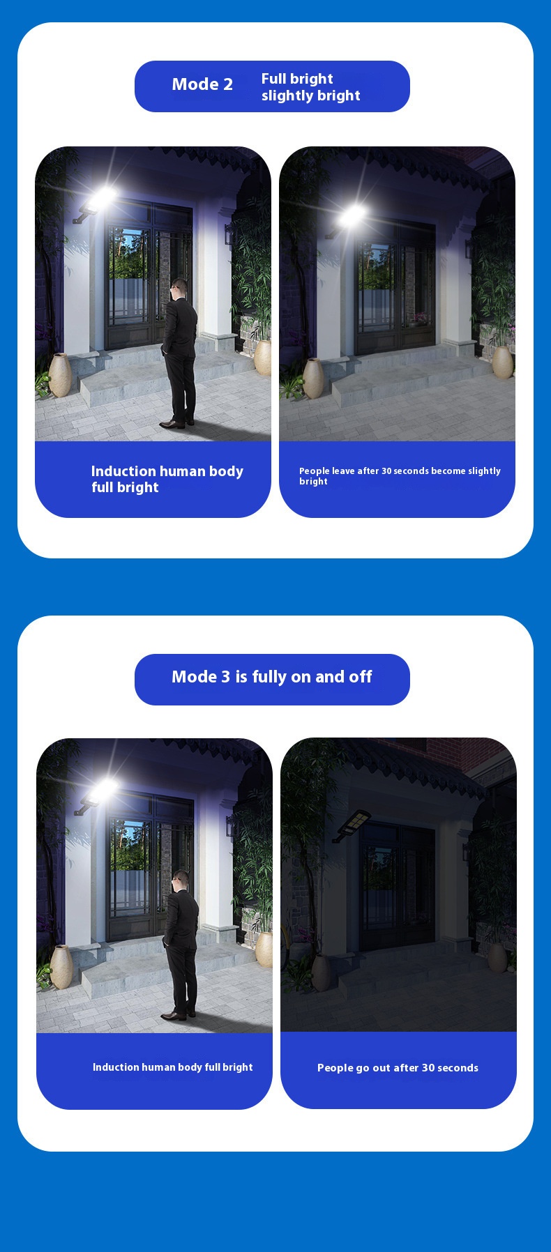 - Intelligent Sensor Modes: Equipped with smart light control and motion detection, the lamp offers three adjustable modes: Constant bright, dim bright when people leave, and extinguished when people leave. These versatile settings enhance convenience and energy efficiency.