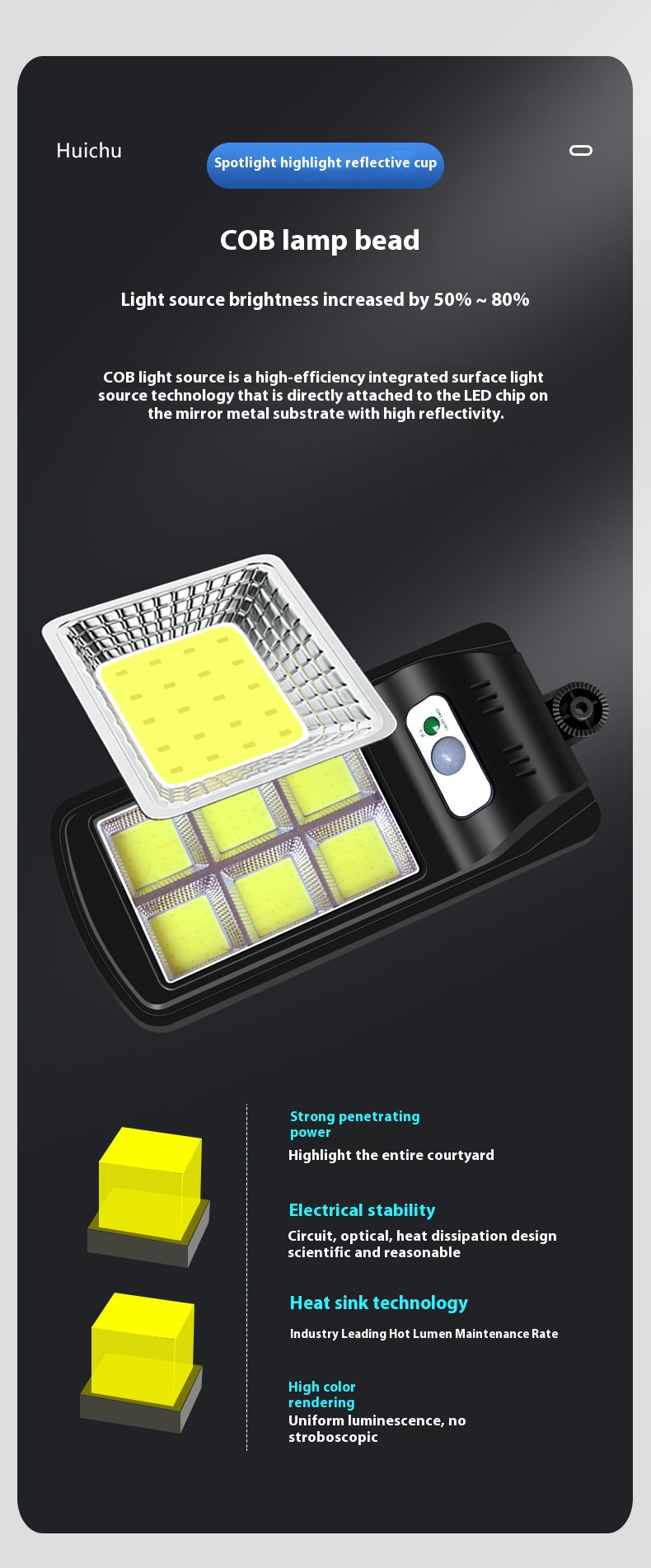 - Enhanced Brightness with COB Technology: Our lamp utilizes advanced Chip-on-Board (COB) technology, dramatically increasing brightness by 50%-80%. This ensures your outdoor spaces are illuminated to perfection, making it highly effective for security and aesthetic purposes.