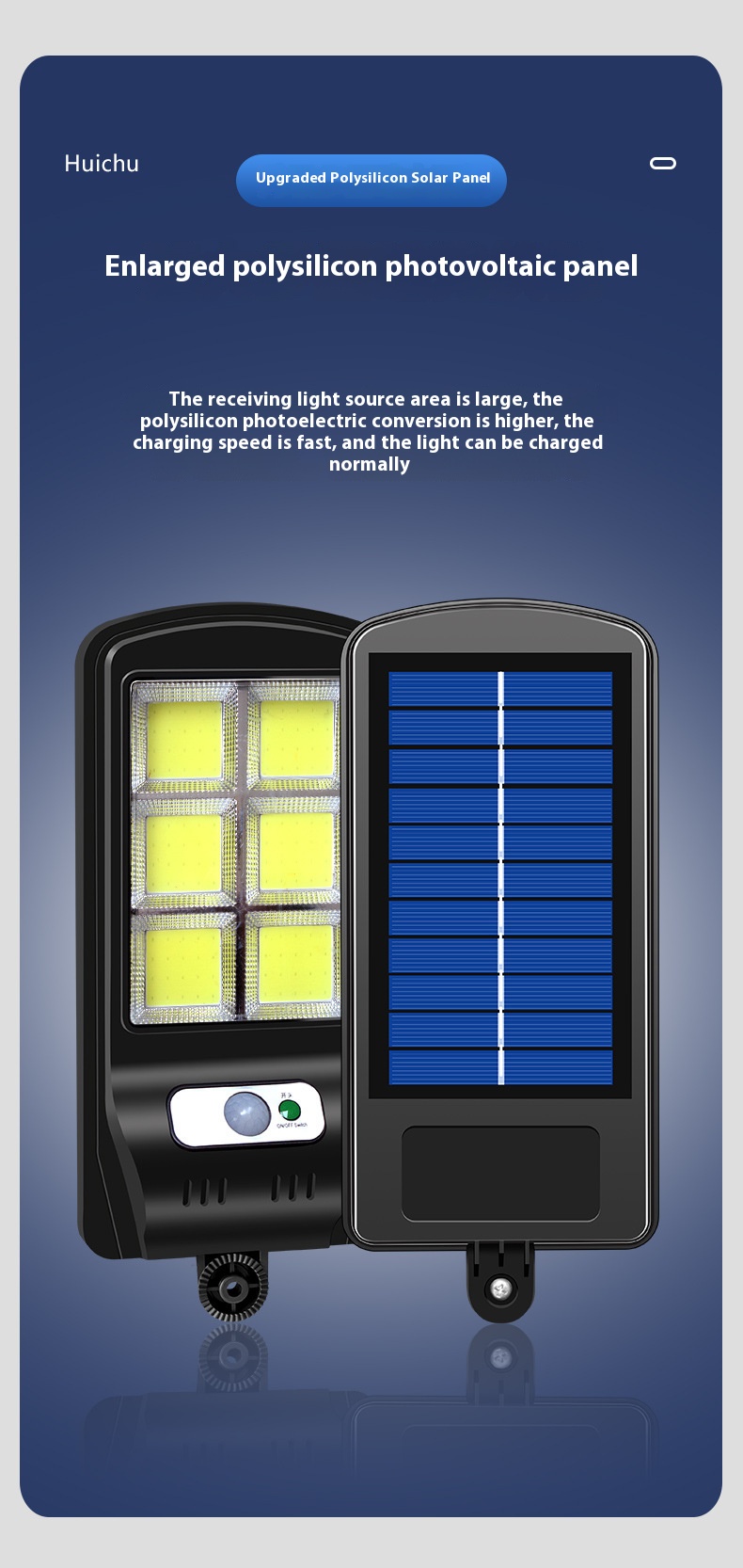 - Large Solar Panel: A significantly enhanced multi-crystalline silicon solar panel facilitates faster charging and increased energy conversion efficiency. Its larger surface area optimizes sunlight absorption, ensuring dependable, eco-friendly power regardless of cloudy weather.