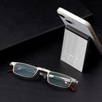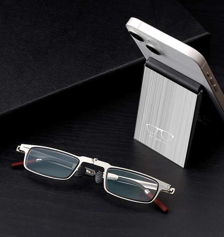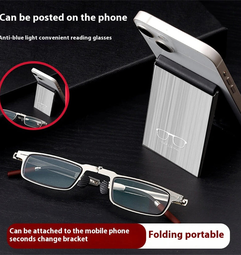 • 2 in 1 Portable Folding Reading Glasses with Metal Glasses Case Mobile Phone Holder HD Anti-Fatigue Anti-blue Light Presbyopic Glasses