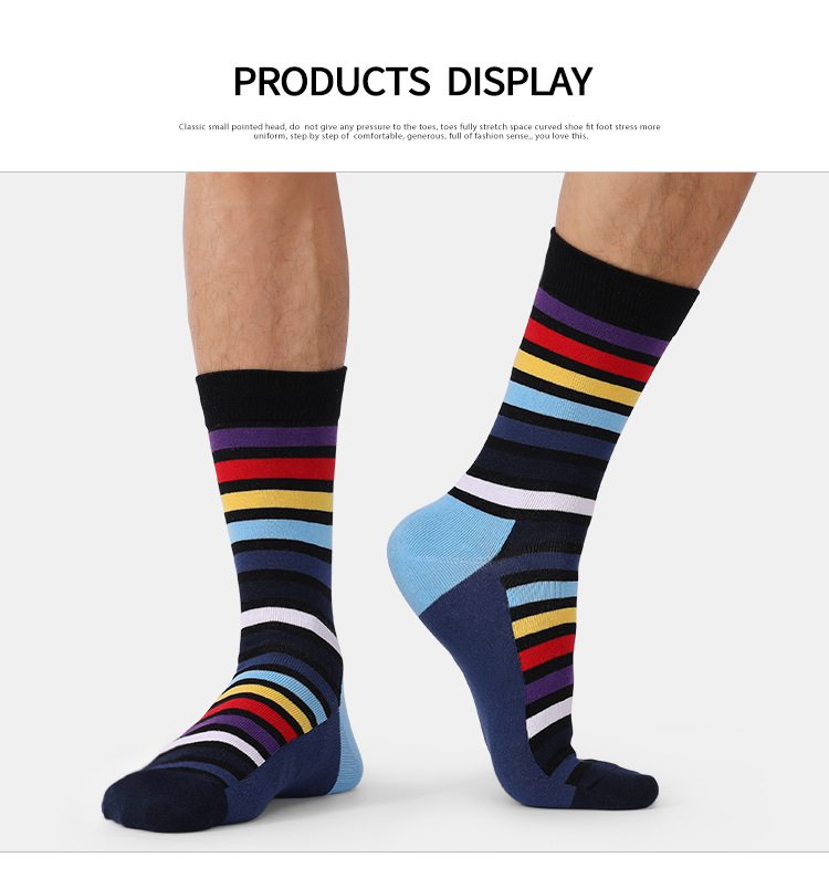 3.Simple striped Color Dress Socks: suitable for both business and casual occasions, paired with leather shoes and casual shoes.
