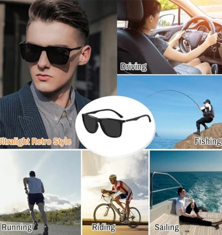 • Fashion Black Square TAC Polarized Sunglasses UV400 Protection Sun Eyewear Glasses for Outdoor Cycling Driving Travel Fishing