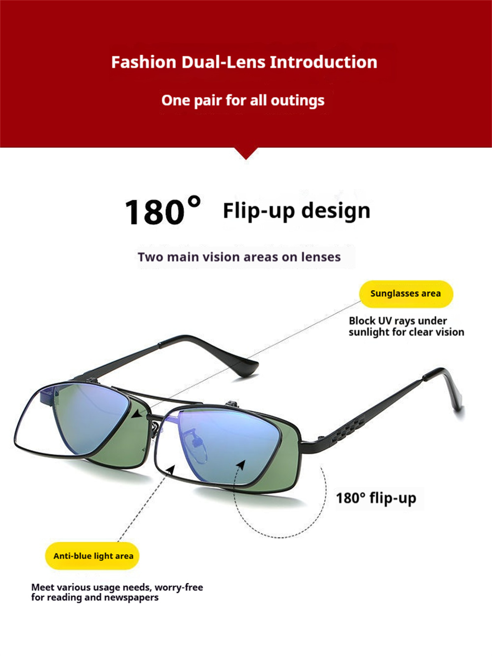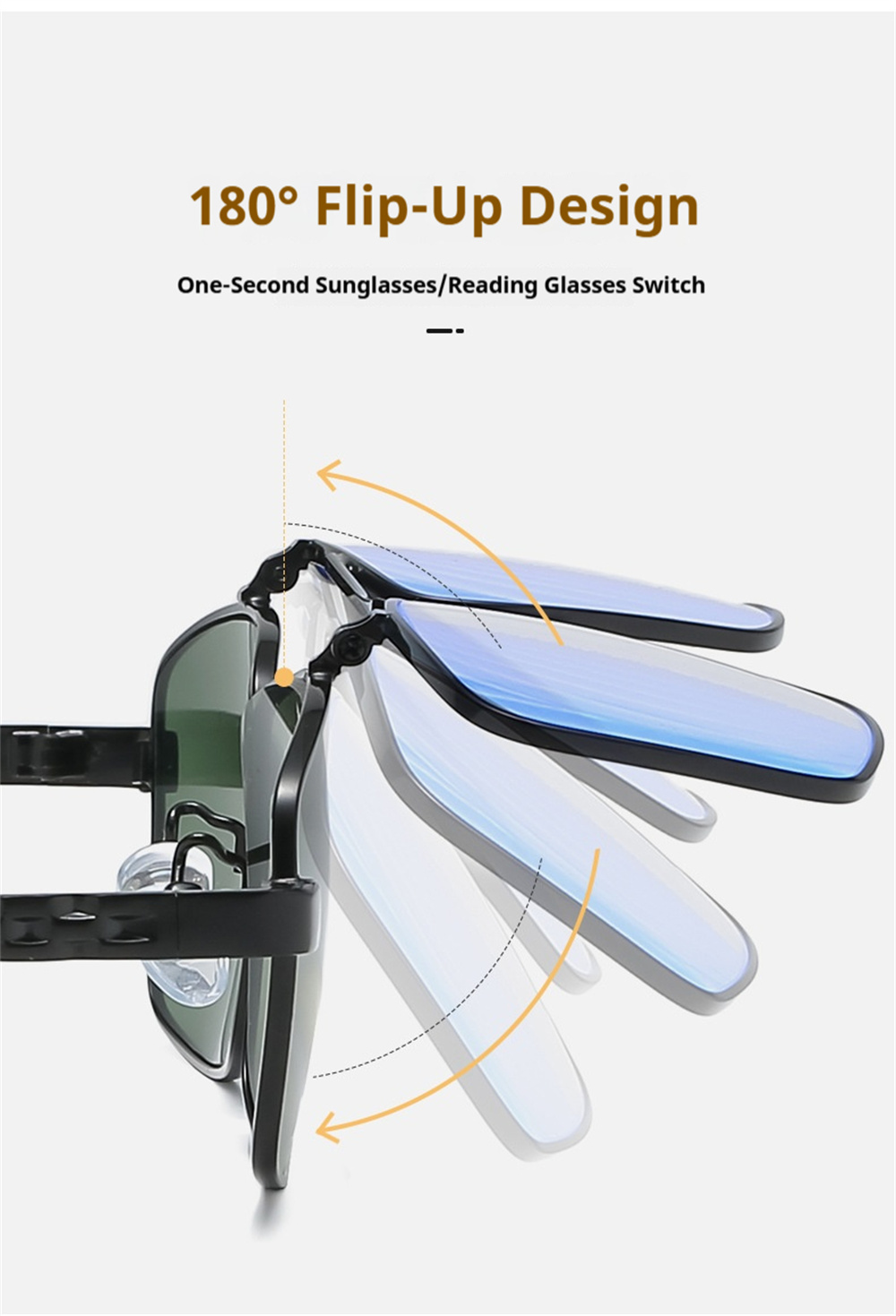 2. 180-degree flipping lenses for easy transition between uses.