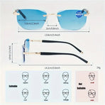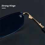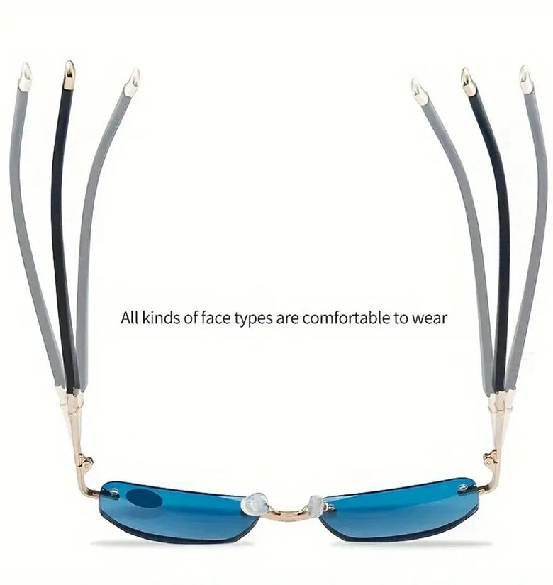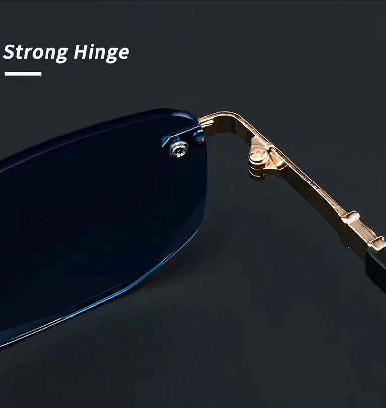 1. Blue light-blocking lenses protect your eyes from digital strain.2. Rimless design offers a sleek and modern look.3. Metal frames are wearable and long-lasting.4. Unique Faceted edges design adds a touch of elegance.5. Ideal for seniors and those in need of reading glasses.