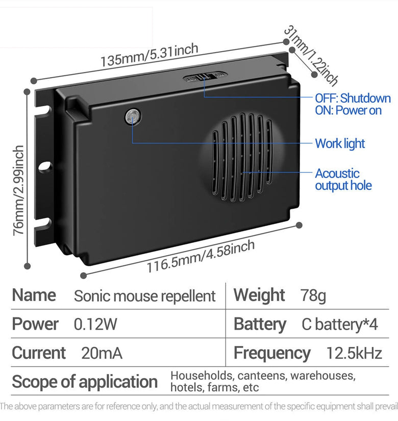 1. The Sonic Mouse Repellent has a power rating of 0.12W, indicating that it consumes minimal energy while still being effective in repelling mice.