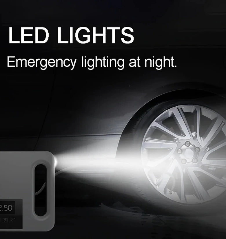 3. Equipped with high-brightness LED lights for emergency/night lighting. The air pump has built-in LED lights that provide high brightness and are suitable for emergency situations or night use.