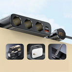 Specifications:Brand: BaseusColor: BlackMaterial: PC+ABSDC Input: 12V=20A Max.AC Output: 200V-240V, 50Hz 150W Max. (corrective wave)USB Output: 5V=2.4A; 9V=2A; 10V=2.25A; 12V=2....