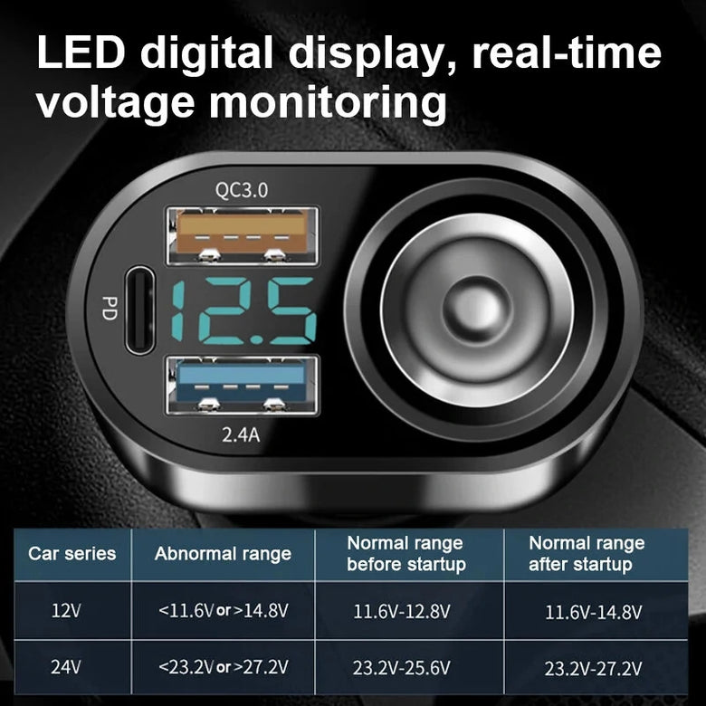 6. Metal elastic contact design, suitable for ciggie lighter ports of different sizes, can carry 12V/24V wide voltage input, and is compatible with most models on the market.