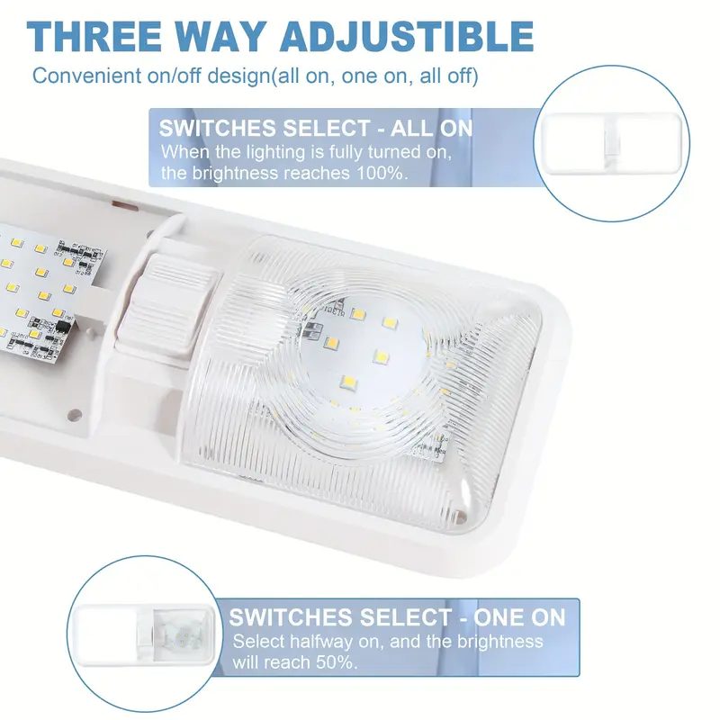 - Adjustable Lighting Modes: Featuring three adjustable modes—All-On, One-On, All-Off—allowing customization of the light intensity based on your preference and activity inside the RV.