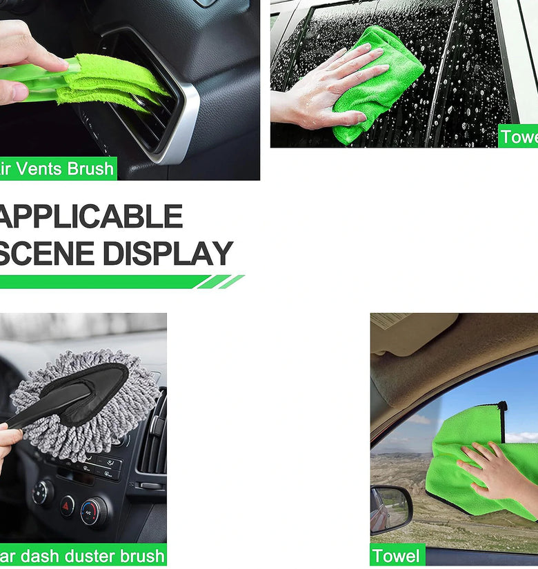 2. Multi-functional tool: The set includes a towel, air conditioning brush, dust removal brush, and air conditioning outlet soft brush, allowing you to easily clean different parts of your car.