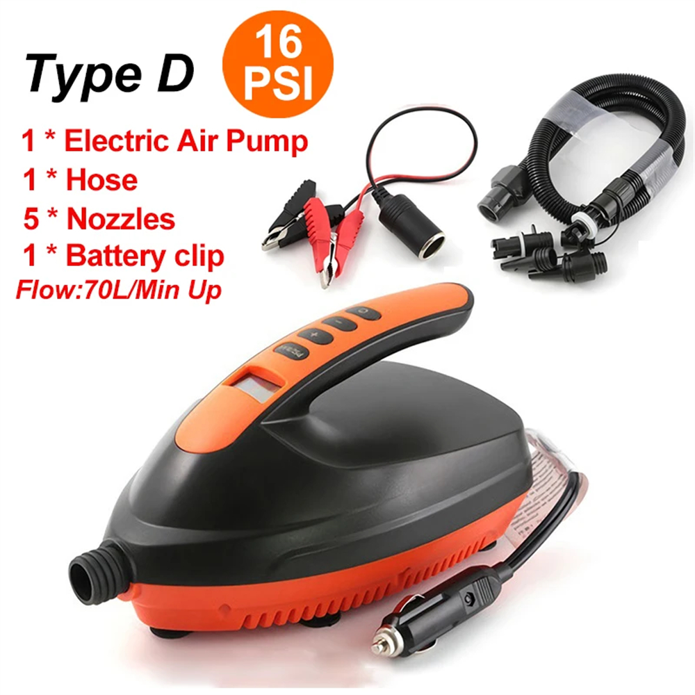 16PSI Electric Air Pump High Pressure Outdoor Paddle Board Pump for SUP Kayak Air Beds 12V Digital Inflatable Pump