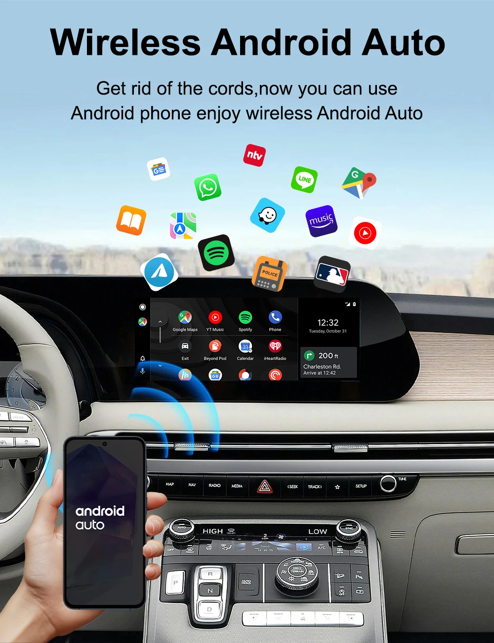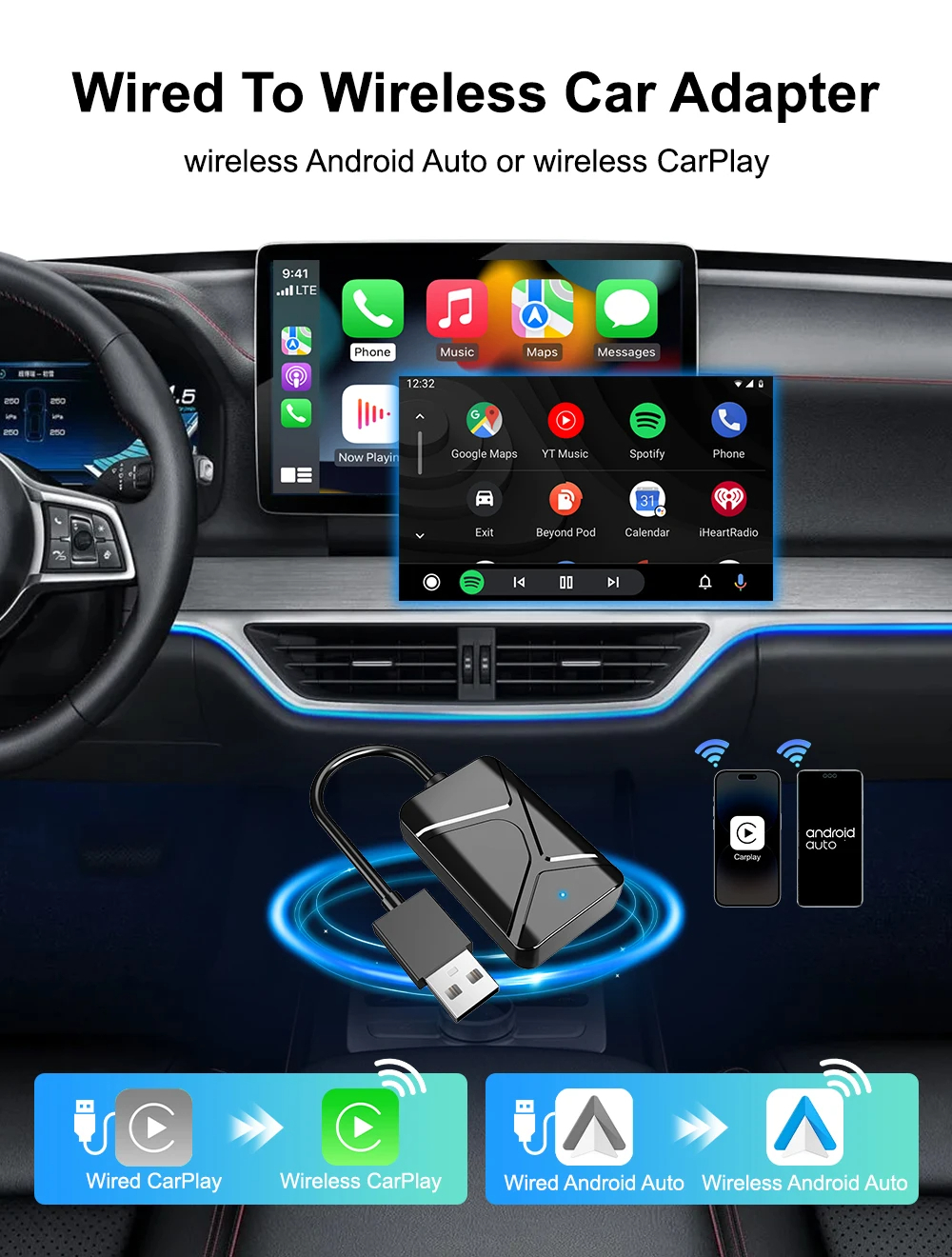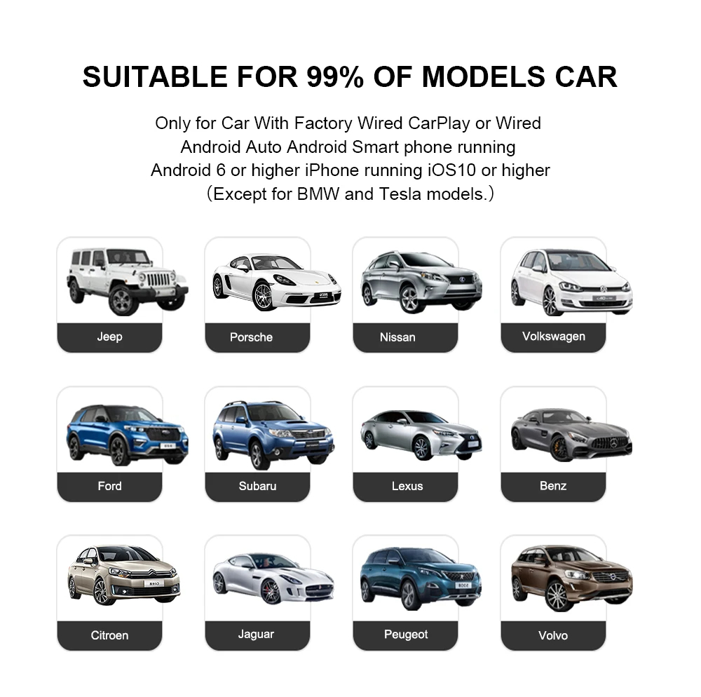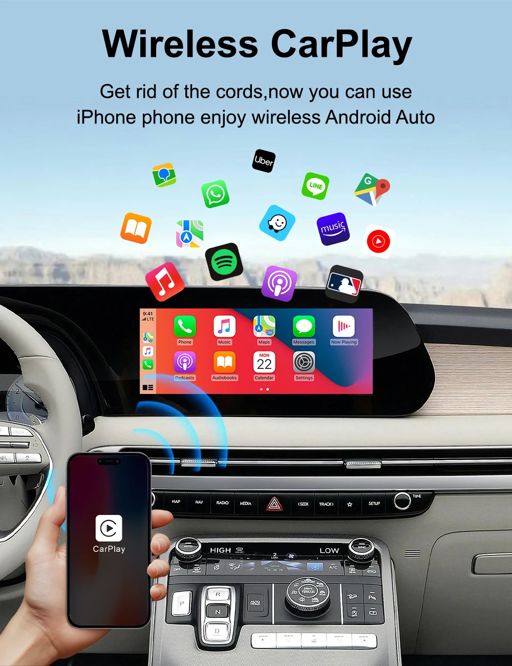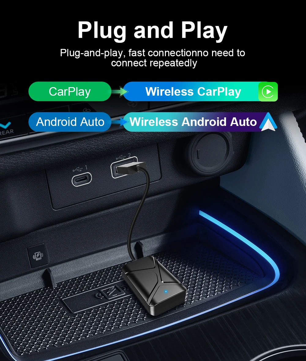 - Seamless wireless conversion supports CarPlay and Android Auto for easy smartphone integration.