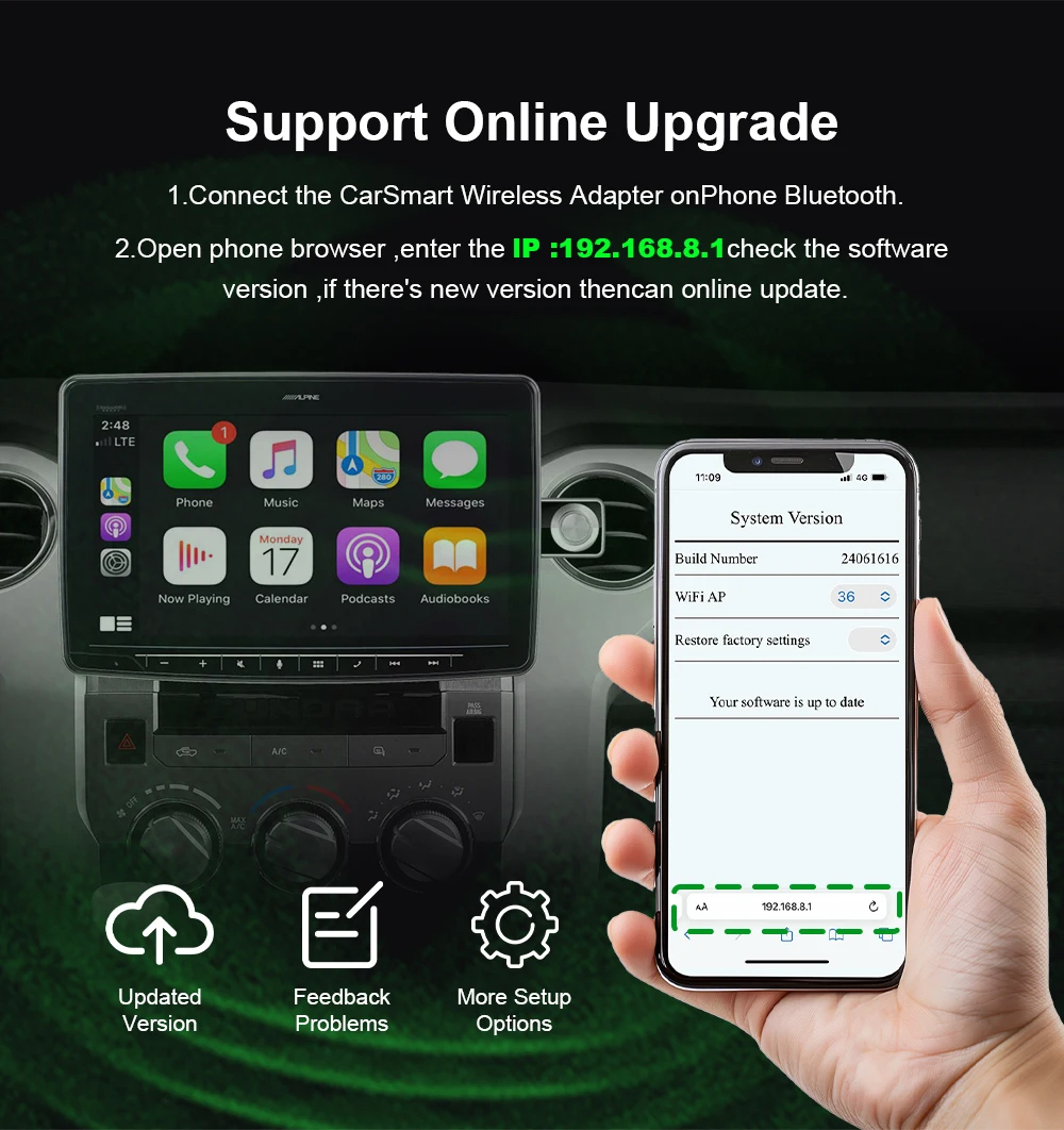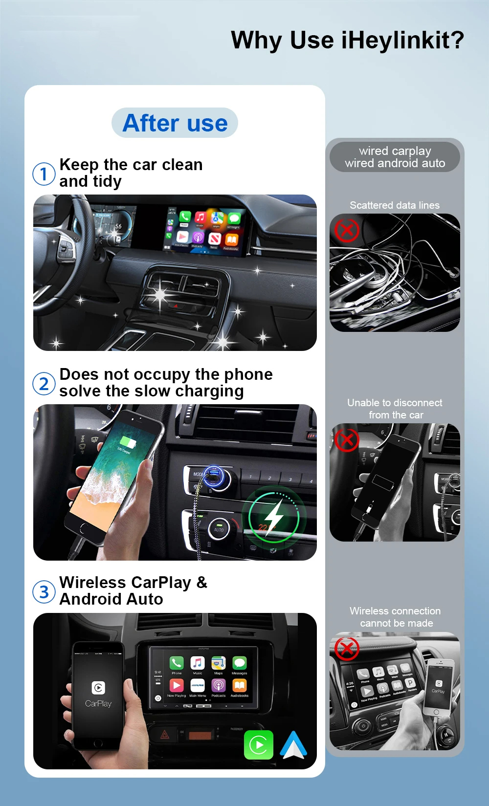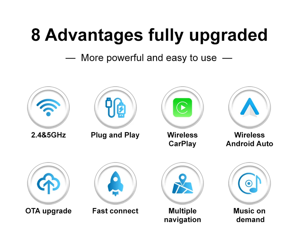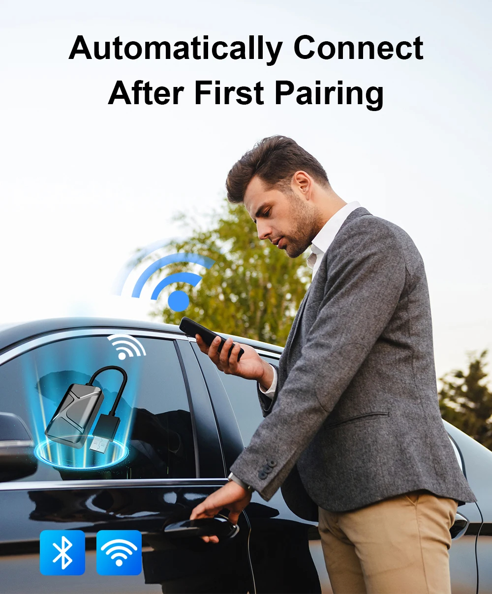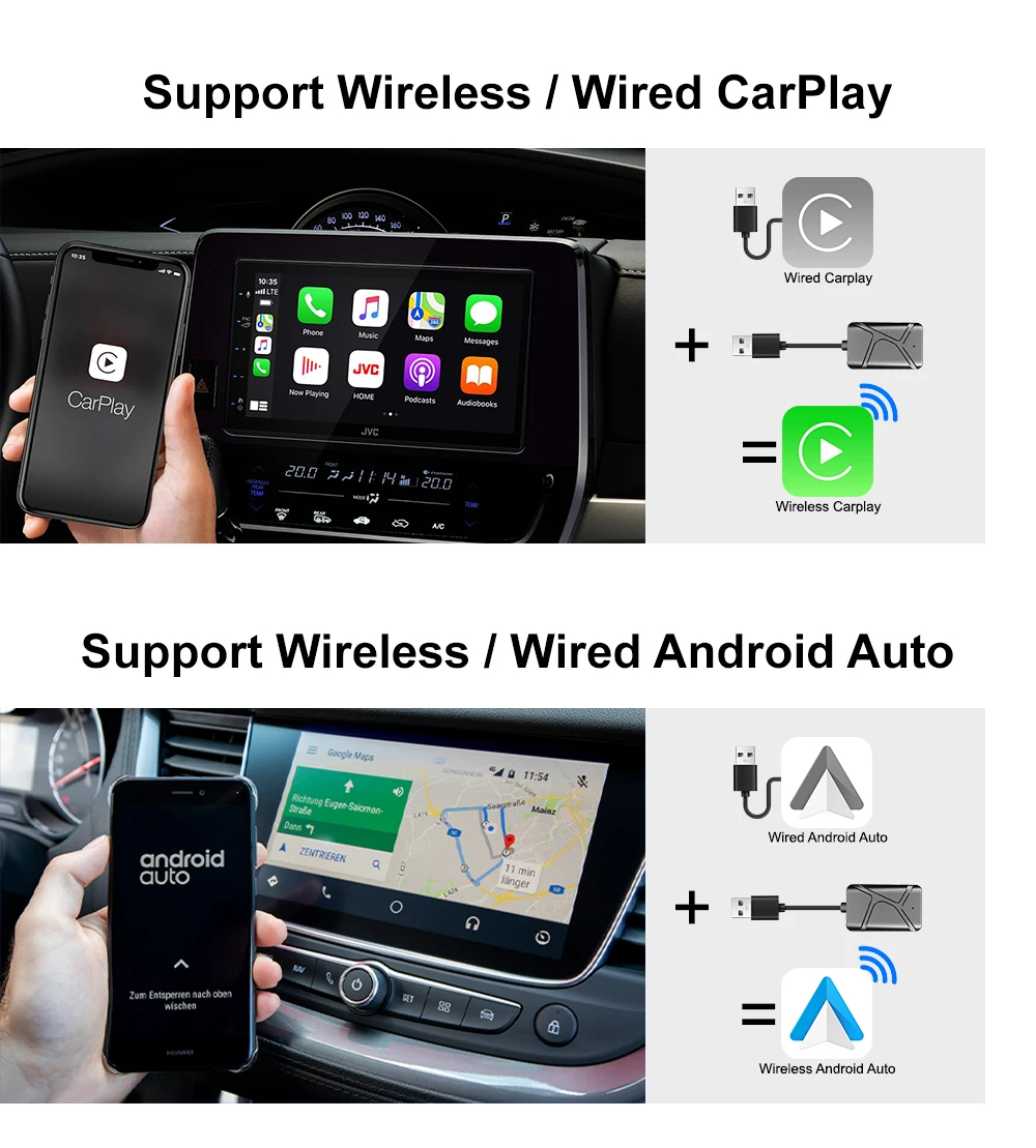 - Seamless wireless conversion supports CarPlay and Android Auto for easy smartphone integration.