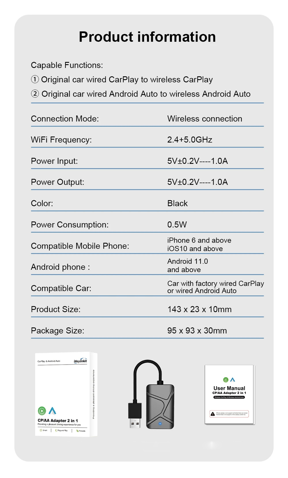 • 2 in1 CarPlay Wireless Adapter Mini Box CarPlay Android Auto Dongle For Benz for Audi for Mazda for Toyota for VW OEM Car Radio