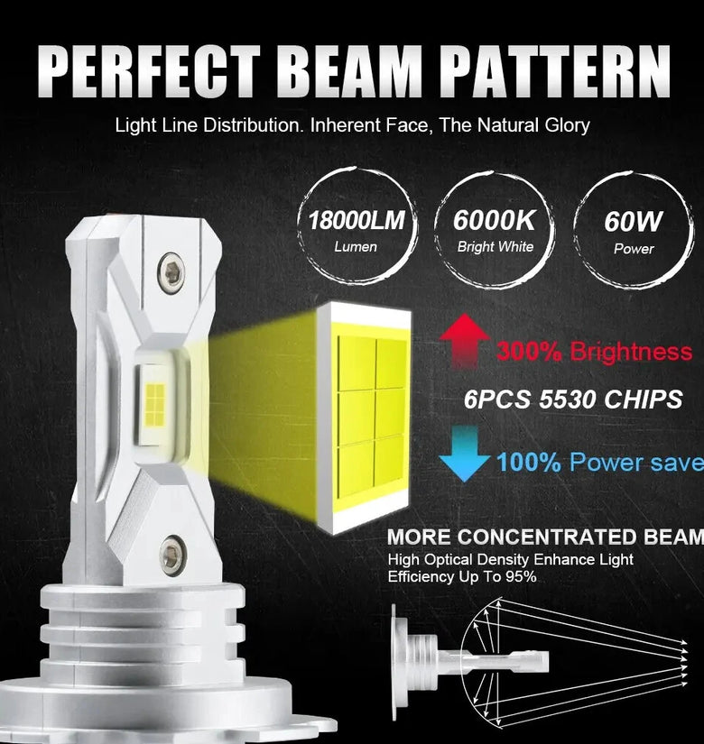 Lumen: 18000LM/Pair, 9000lm/Bulb
