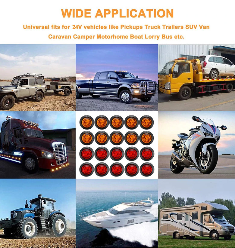 - Universally suitable for all 12V DC applications. Trailer clearance buses minibus caravans boat trucks pickups and more. Grommets are installed on the side front and rear landing gear and serve as clearance, side markers, turn signals or auxiliary stop tail turn lights.