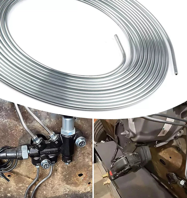 • 25Ft Coil Roll of 3/16"OD Steel Zinc Brake Line Fuel Tubing Kit with 15 Fittings Replacement Accessories