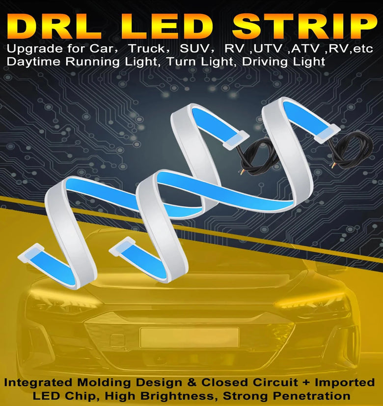 -- Integrated Control Module: The car LED daytime running light is equipped with a built-in mini control module. The controller is sealed inside the lamp tube together with the lamp panel and has an integrated driver IC. This design ensures safe, anti-interference operation, saves installation space, and provides a shorter start-up time and a visually appealing light scanning effect when ignited.