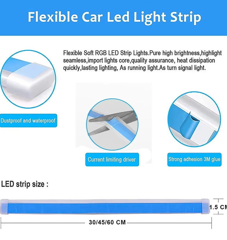 -- Universal Fit & Multiple Sizes: This LED light is compatible with all car models, providing universal fit and can be easily upgraded to any vehicle.