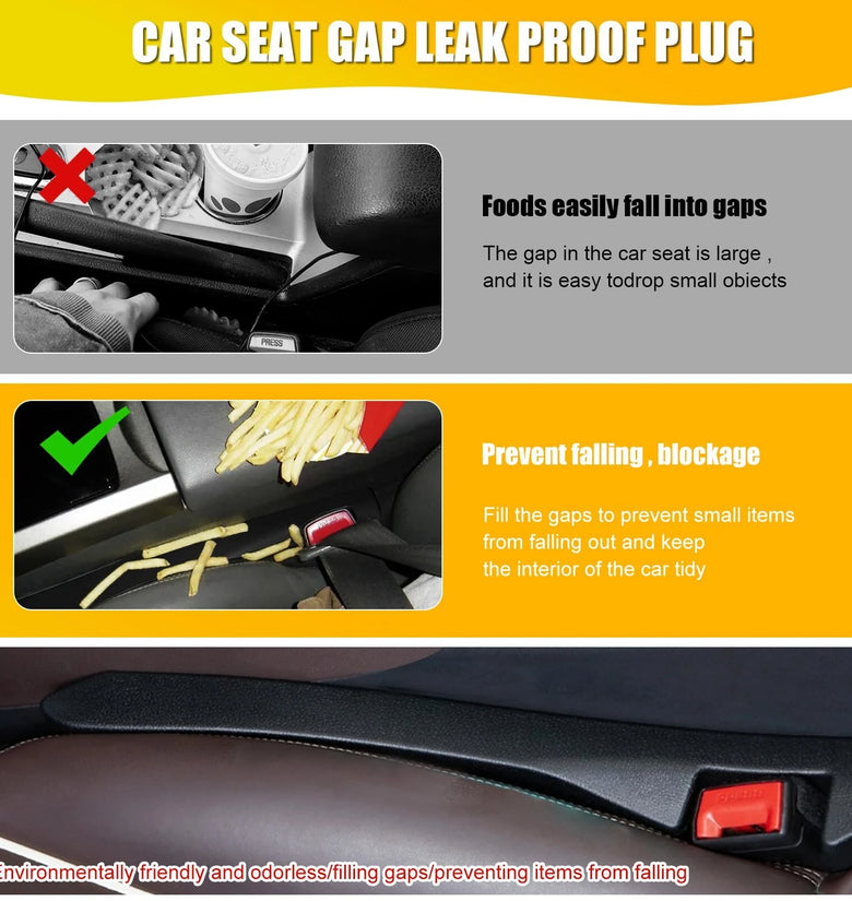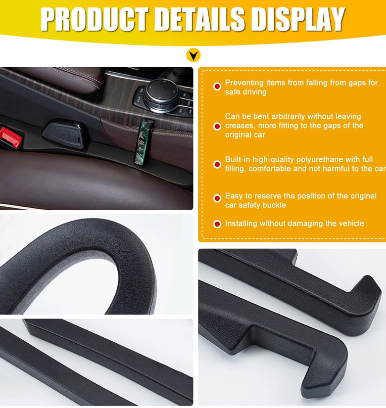 -- It only takes a few seconds to insert the car gap strip into the gap between the seat and the center console so that it will not move while driving or adjusting the seat. It is an ideal filler to block water drops and prevent debris from falling.