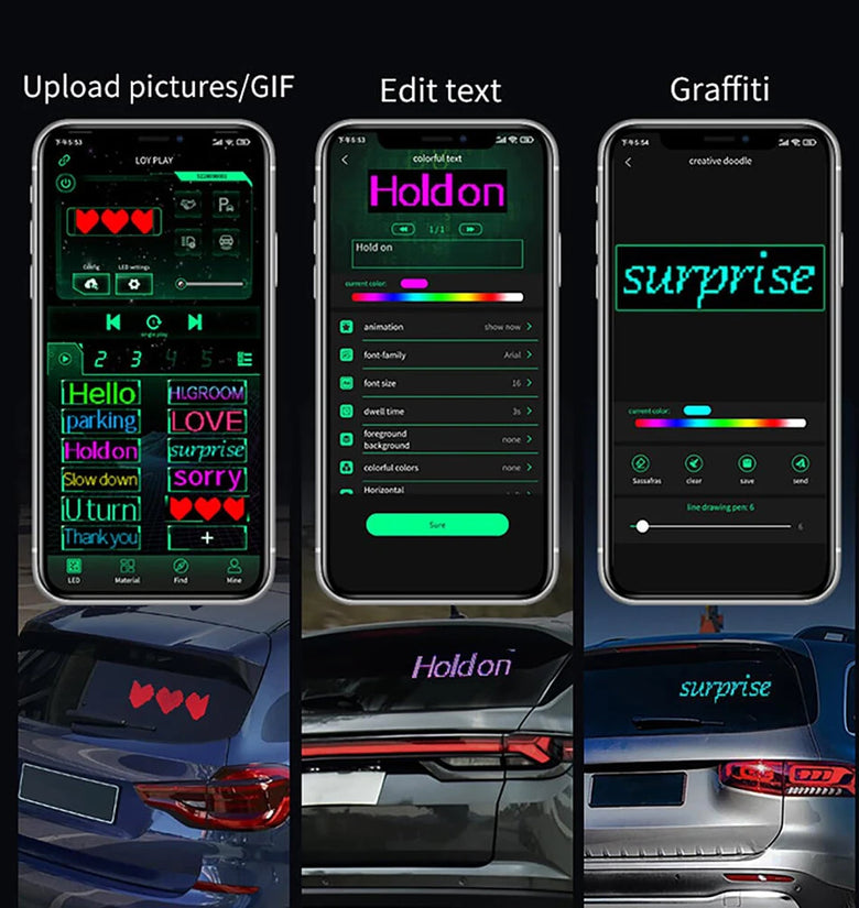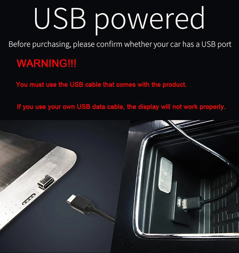 - USB Power Interface for Versatile Usage: With its USB power interface compatibility, the LED screens can be powered using car chargers, power banks, and other USB devices. Therefore, its application is not confined to vehicles alone. It is suitable for events like music festivals, store promotions, and even marriage proposals, adding a unique visual element to any occasion.