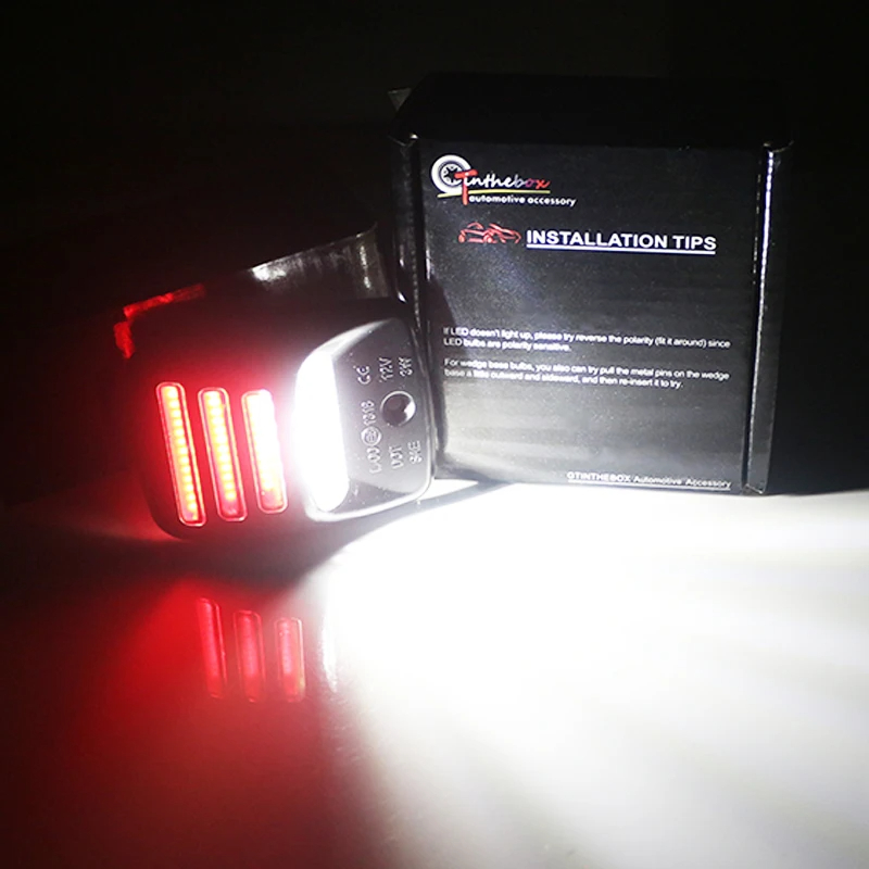 LED Chipset: 18-piece xenon white LED for license plate, 18-piece red LED for rear tailgate running marker light or rear fog light