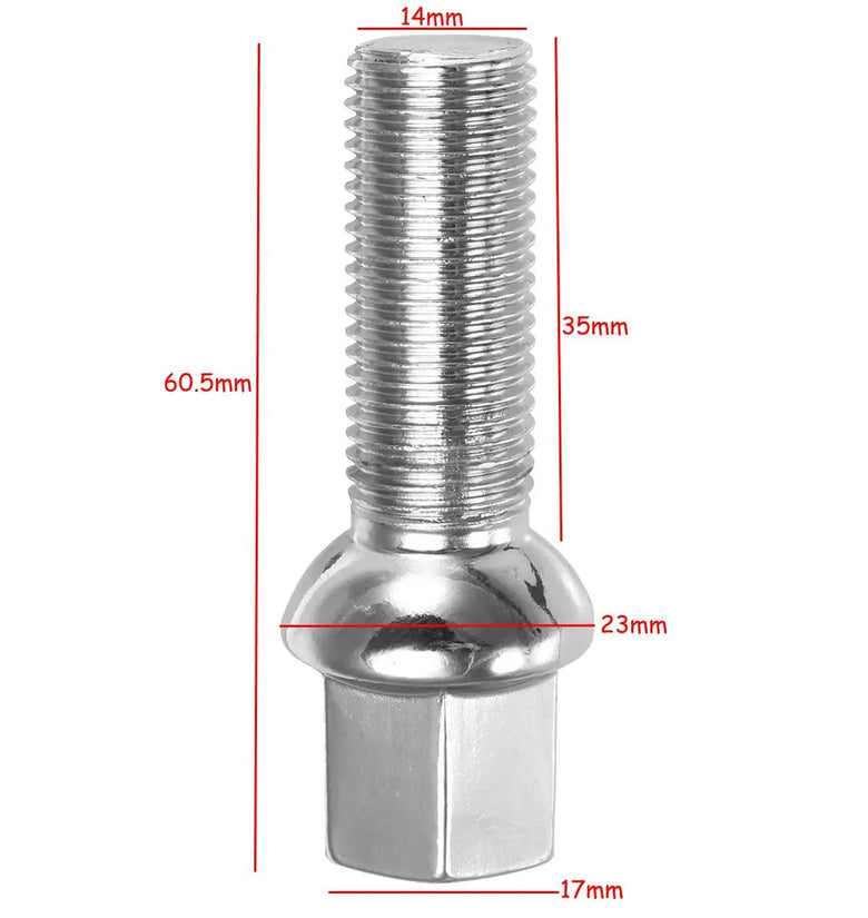 • 35mm Thread Silver Car Tire Screw Radius Wheel Lug Nut Bolts For Audi