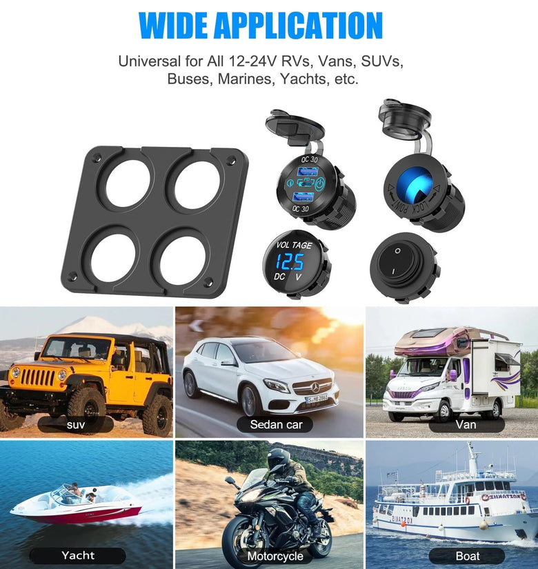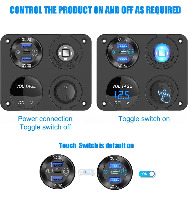- Efficient Toggle Switch Control: Designed with a waterproof toggle switch, this panel allows you to manage the power supply to all connected devices effortlessly. This feature minimizes power consumption and helps extend the overall lifespan of your equipment, making it perfect for direct battery connections without draining the battery.