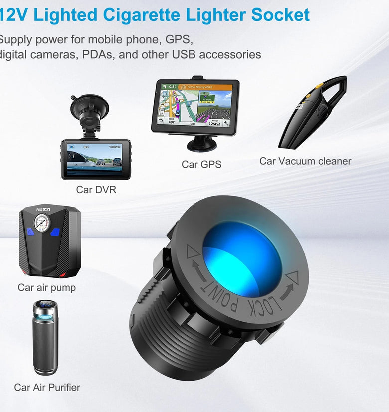 - Illuminated Lighter Socket: Featuring a blue light, this 150W lighter socket is easy to locate even in the dark. With the capability to support various high-power devices like dashboard cameras and GPS units, it offers convenience and versatility for all your driving needs.