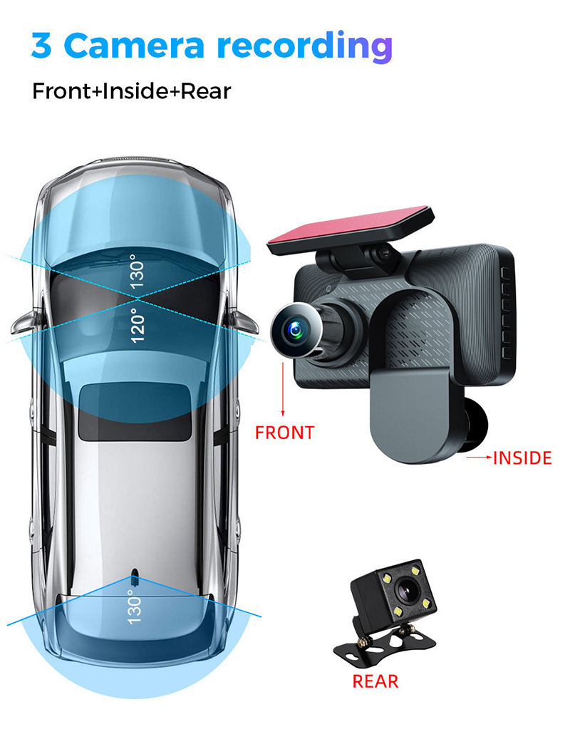 - 3-Channel Recording: This innovative dash cam offers simultaneous three-channel recording. It captures both the front view and interior of the vehicle, making it perfect for monitoring pets, children, or passengers. Ideal for providing comprehensive evidence in case of accidents.