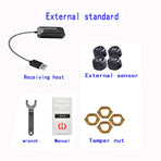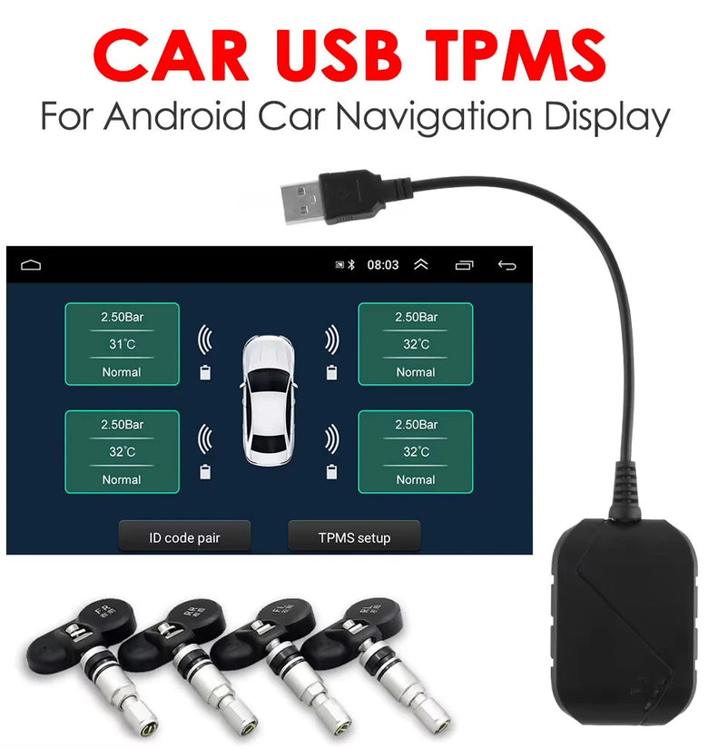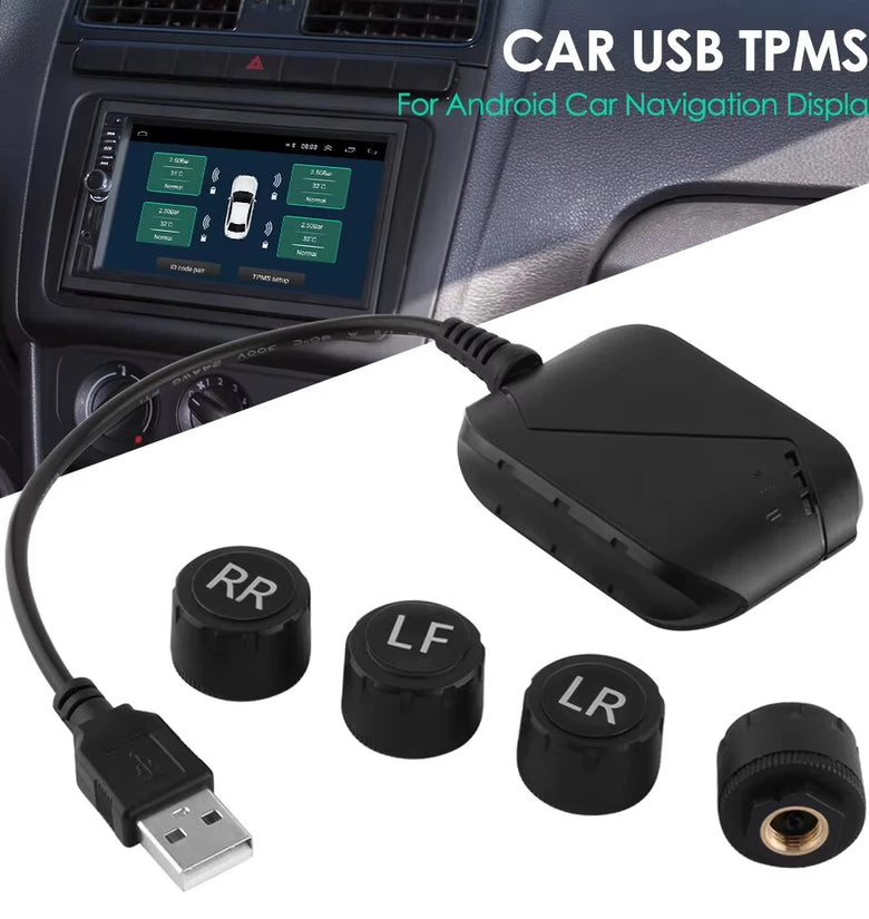 - Plug-and-Play Wireless System: Designed with the user in mind, this wireless tire pressure monitoring system is tailored for Android navigation devices. It features a USB-connectable design for plug-and-play ease, complemented by a smart chip and accompanying APK for seamless, uninterrupted signal transmission.