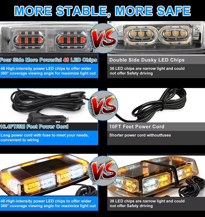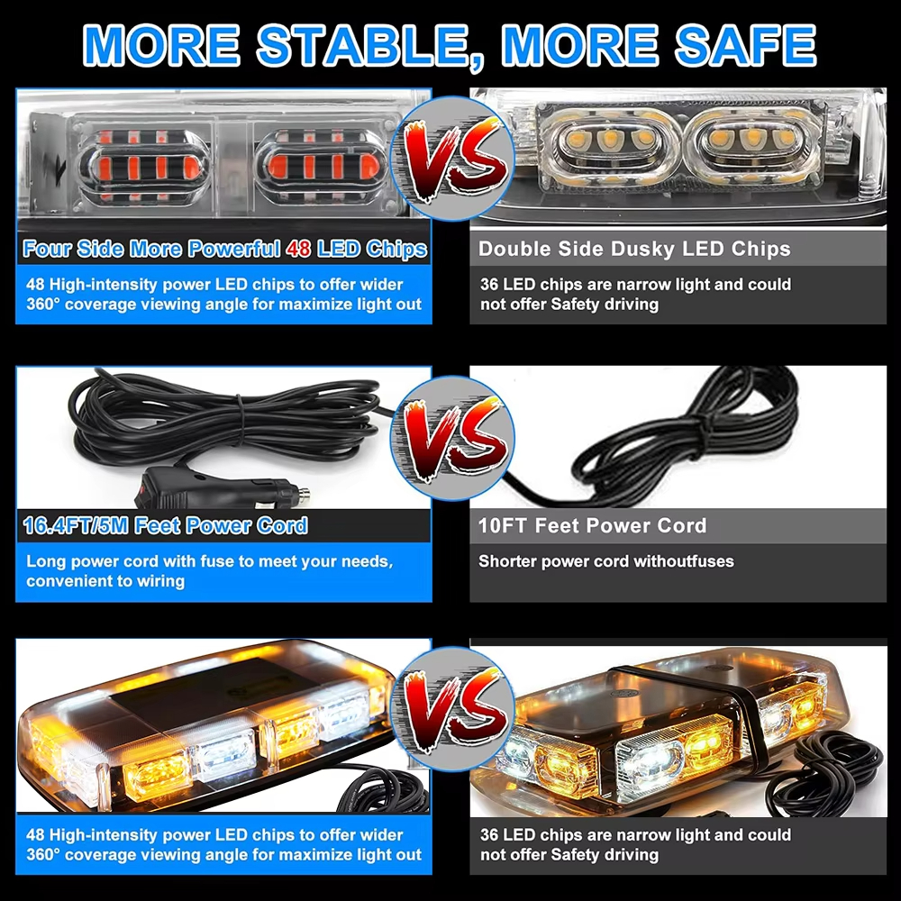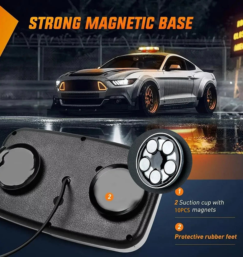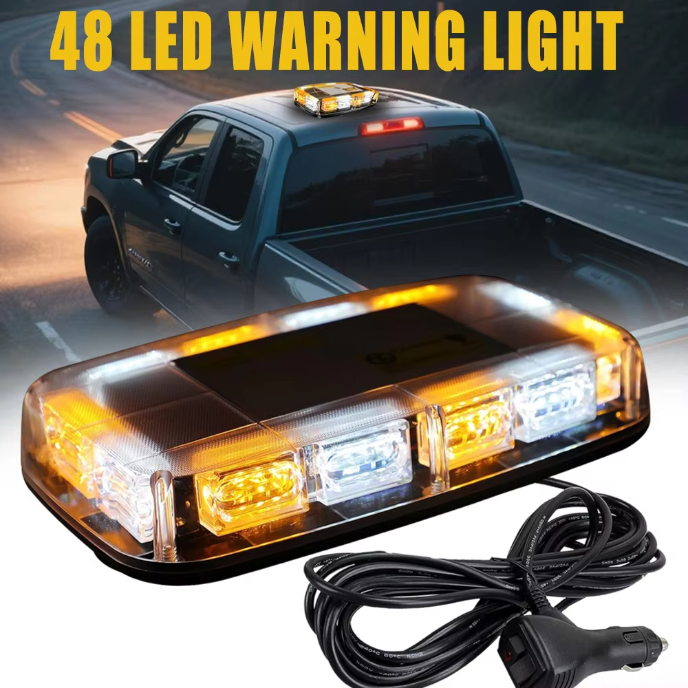 Magnetic Strobe Light|Magnetic Strobe Light For Truck|High Visibility LED:Features 48 LEDs, ensuring high visibility in day and night scenarios for emergency vehicles.