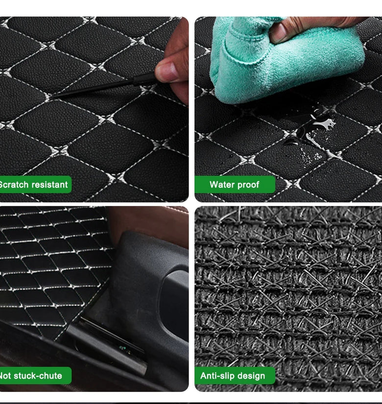 - High-Quality PU Leather: Constructed using high-quality PU leather, these mats are affordably priced while ensuring top-tier performance. The five-layer material precision manufacturing guarantees a robust product that meets various automotive needs.