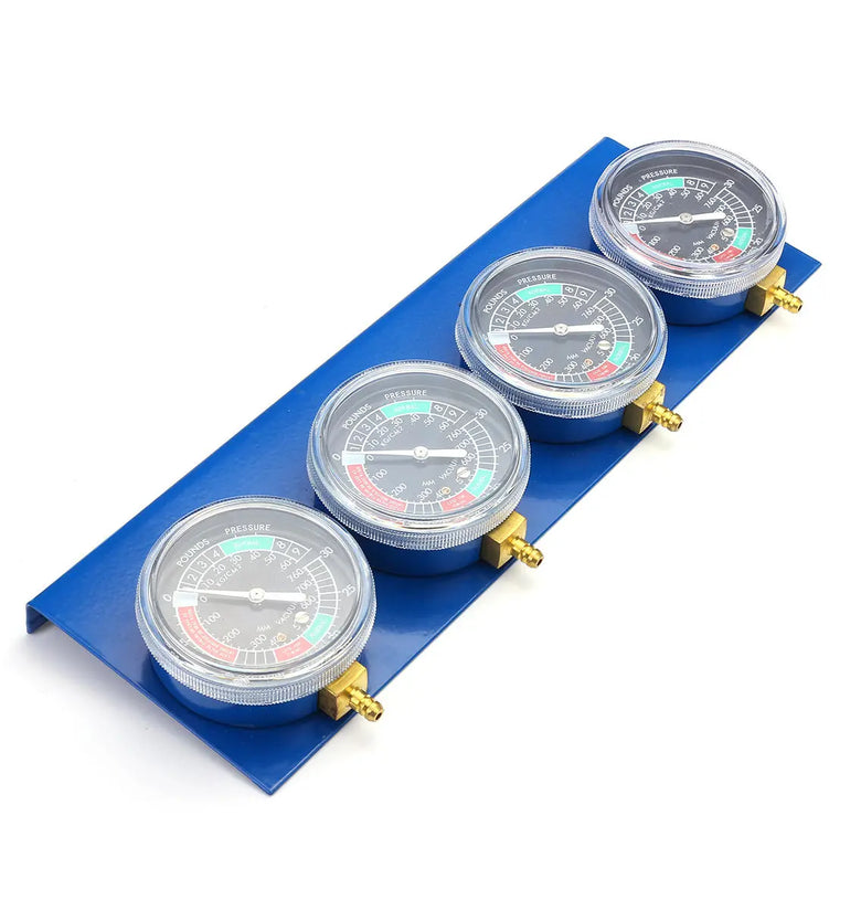 - Each unit includes precision gauges mounted on a robust metal base for worktop use,