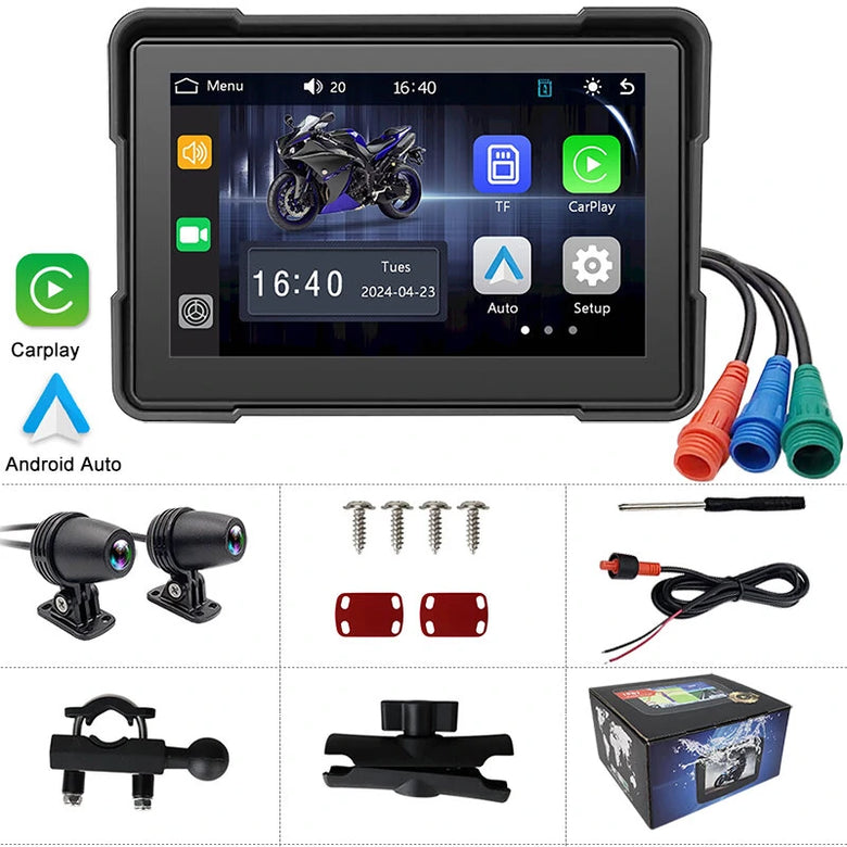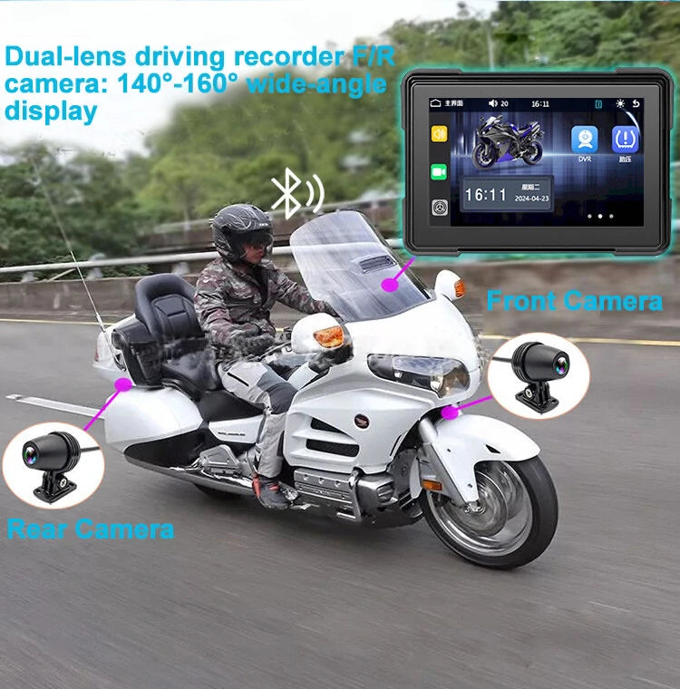 4. Mobile Phone Interconnection: The Motorcycle DVR supports wireless carplay and Android Auto, enabling seamless connectivity with a user's mobile phone. This feature allows riders to access their phone's functionality and applications directly from the Motorcycle DVR's interface.