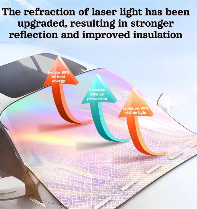- Laser Reflective Insulation: Equipped with upgraded laser coating for 99% UV protection, effectively blocking harmful light and isolating 95% heat energy. Keep your car interior cooler in high temperatures.