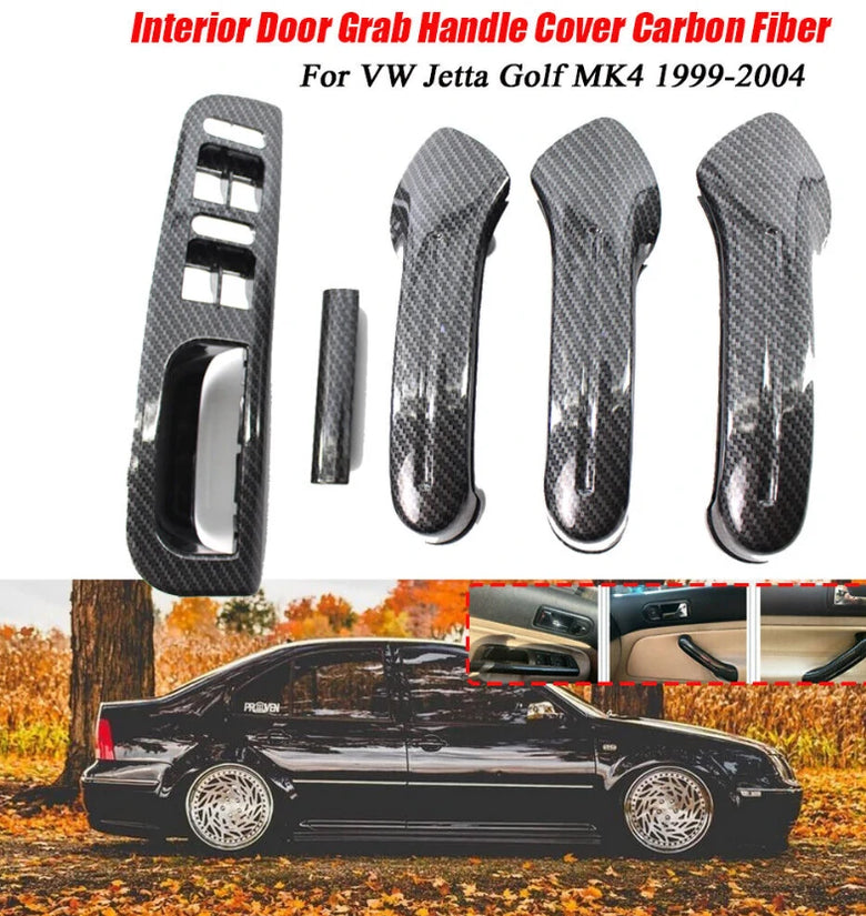 Specification:100% brand new!!!Color:Carbon Fiber StyleMaterial: ABS PlasticSize: As picture shownFitment:For Volkswagen Jetta/ Golf / Bora Mk4 1999-2004(This item only fit for LHD)(The Compatibility Is Just For Reference. Please Compare The Part No.with Your Original One Before Purchasing!)Reference Parts No.:1J0 867 171A For Driver Side Rear Interior Handle Cover1J4 867 179A For Driver Side Rear Interior Grab Handle1J0 867 172A For Passenger Side Front & Rear Interior Handle Cover1J4 867180A For Passenger Side Front & Rear Interior Grab Handle3B1 867 171E 7DE For Bezel Cover3BO 857 175 for the bezel coverPackage Included: 3x Grab Handles1x Door bezel cover1x Switch bezel (NO Switch included)Note:1. (IMPORTANT) No Instructions Included.Professional Installation Is Highly Recommended!2. Please check the size measurement chart carefully before making payment.3. Please allow 0.5-1 inch difference due to manual measurement.(1 inch=2.54cm)4. The color of the actual items may slightly different from the listing images due to different computer screen, thanks for your understanding.