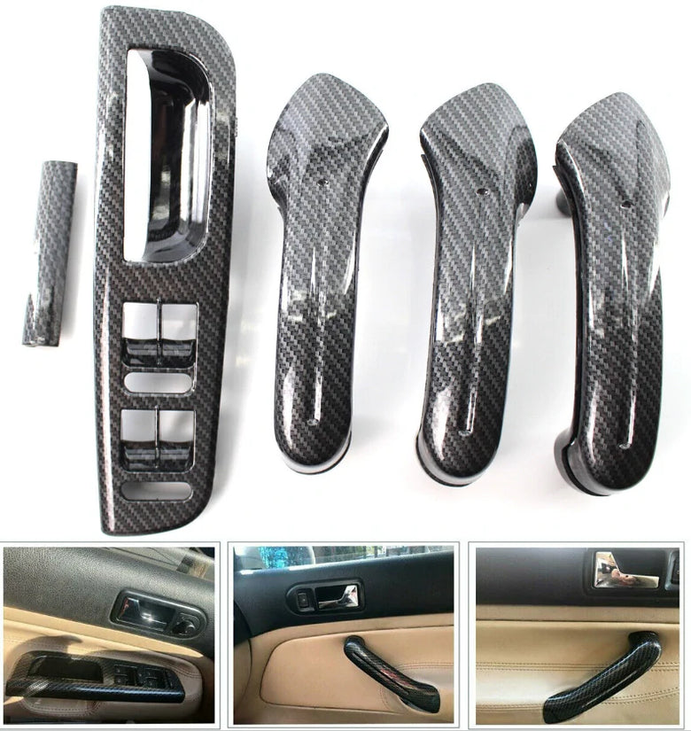 • 5pcs Interio Door Grab Handle Cover Switch Bezel Set Carbon Fiber Style for VW Jetta Golf Bora MK4