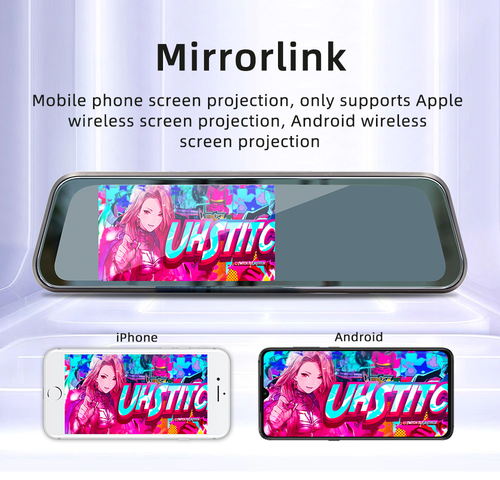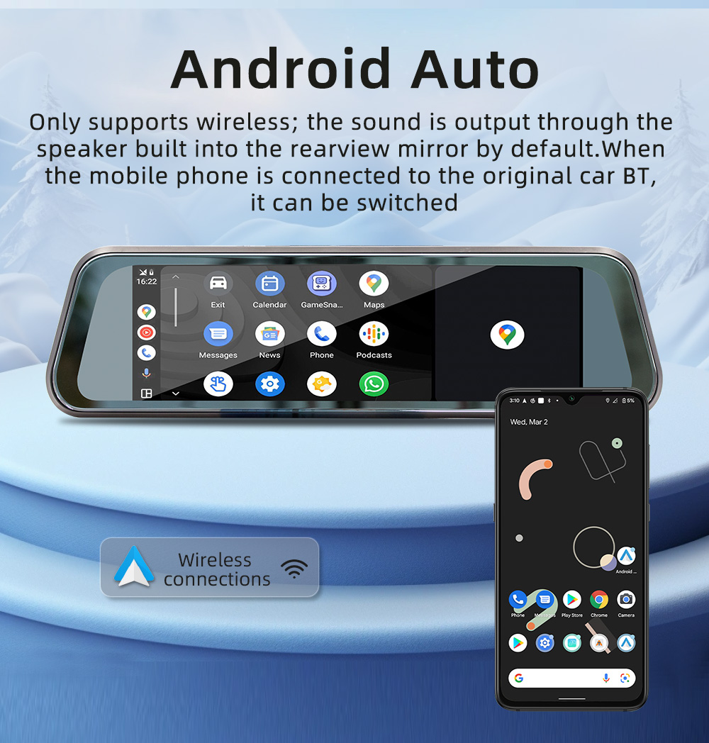- Wireless Mobile Connectivity: Seamlessly connect your smartphone via Wireless Android Auto or Wireless Apple CarPlay, allowing hands-free access to your favorite mobile apps directly from the rearview mirror screen.
