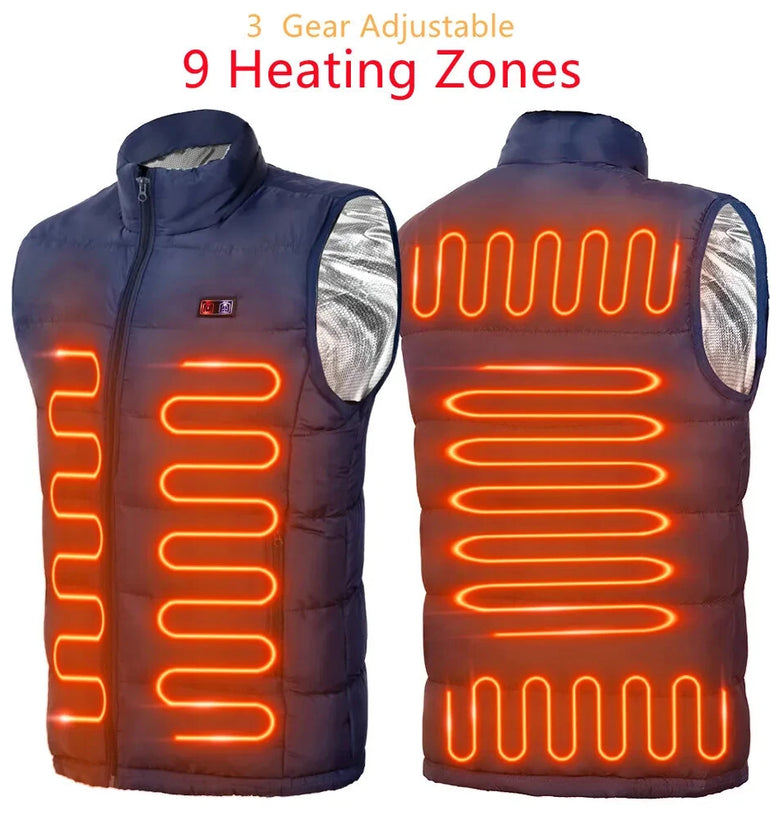 9 Heated Vest Zones Electric Heated Jackets Men Women Sportswear Heated Coat Graphene Heat Coat USB Heating Jacket For Camping