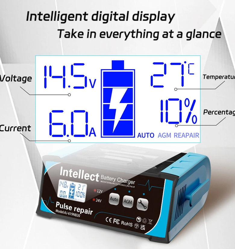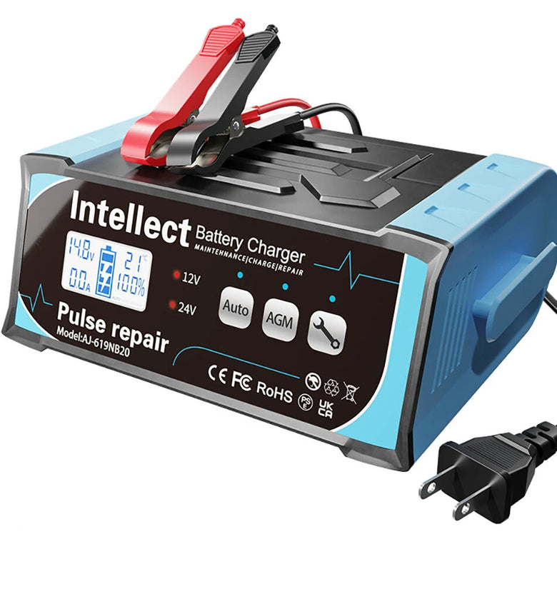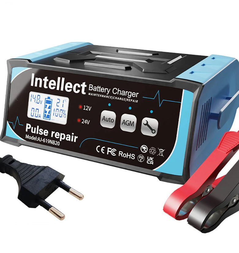 Specifications:Brand: ANJINGProduct Model: AJ-619NB20Name: Car Battery ChargerPower: 200WInput Voltage: 110V-250V 50/60HZOutput Current: 12V (0-11A), 24V (0-7A)Total Power Cord Length: 150CMTotal Length of Clip Wire: 75CMProduct Weight (Including Packaging): 0.7KGProduct Size (Including Packaging): 21.819.510.8CMApplicable Battery Type: 12V/24V lead acid/water/dry/lead-acid battery/start-stop battery (Lithium batteries are disabled)Features:- Intelligent Digital Display: The advanced digital display shows voltage, current, temperature, and percentage in real-time, ensuring precise monitoring and control over the charging process. This feature aids in optimally charging your batteries without any guesswork.- Comprehensive Battery Protection: Equipped with six major protective measures, including reverse, open circuit, over-voltage, overcurrent, overheat, and low voltage protection. This robust safeguarding protocol guarantees safe charging, prevents accidental damage, and prolongs battery life.- High-Quality Components: Incorporates a pure copper high-frequency transformer, solid-state capacitor, and smart chips to enhance reliability and efficiency. Together, these components deliver stable performance, effective heat dissipation, and contribute to the superior build quality of the charger.- Universal Compatibility: Designed to be compatible with a wide range of battery types, including 12V and 24V lead acid, maintenance-free, and start-stop batteries. This universal applicability makes it a versatile solution for various vehicles like motorcycles, cars, trucks, and more.- Ergonomic Design: Features a strong handle for convenient carrying, radiator grid for effective cooling, and flame-retardant ABS housing for added safety. The winding storage design ensures the charger is compact and easy to store, while the wear-resistant, scratch-resistant exterior promises longevity.Package Included:1 x Battery Charger2 x Crocodile Clips1 x User Manual