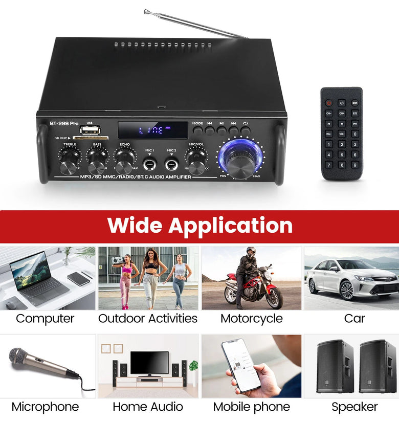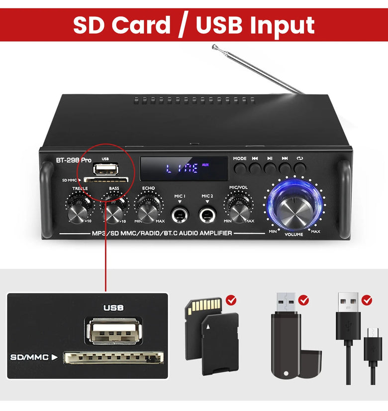 -SD / USB interface, 2 Mic inputs, With Remote control.