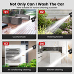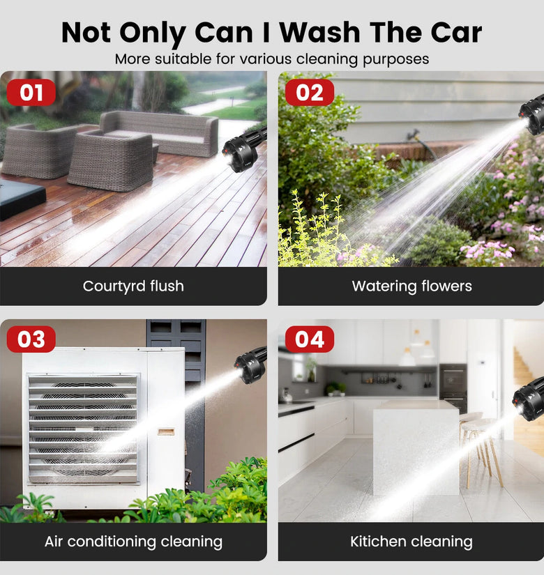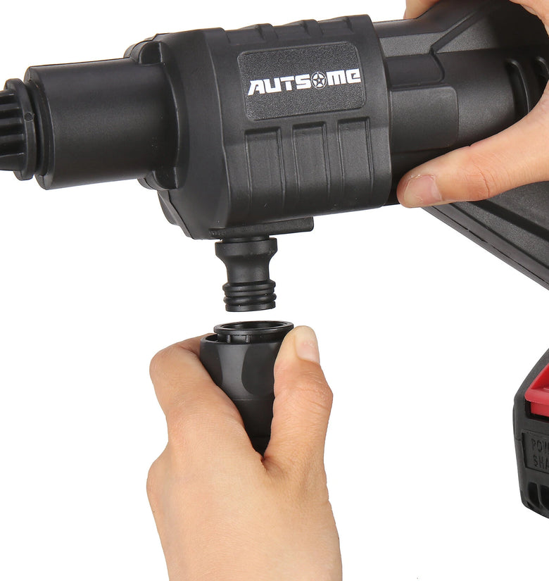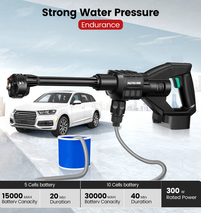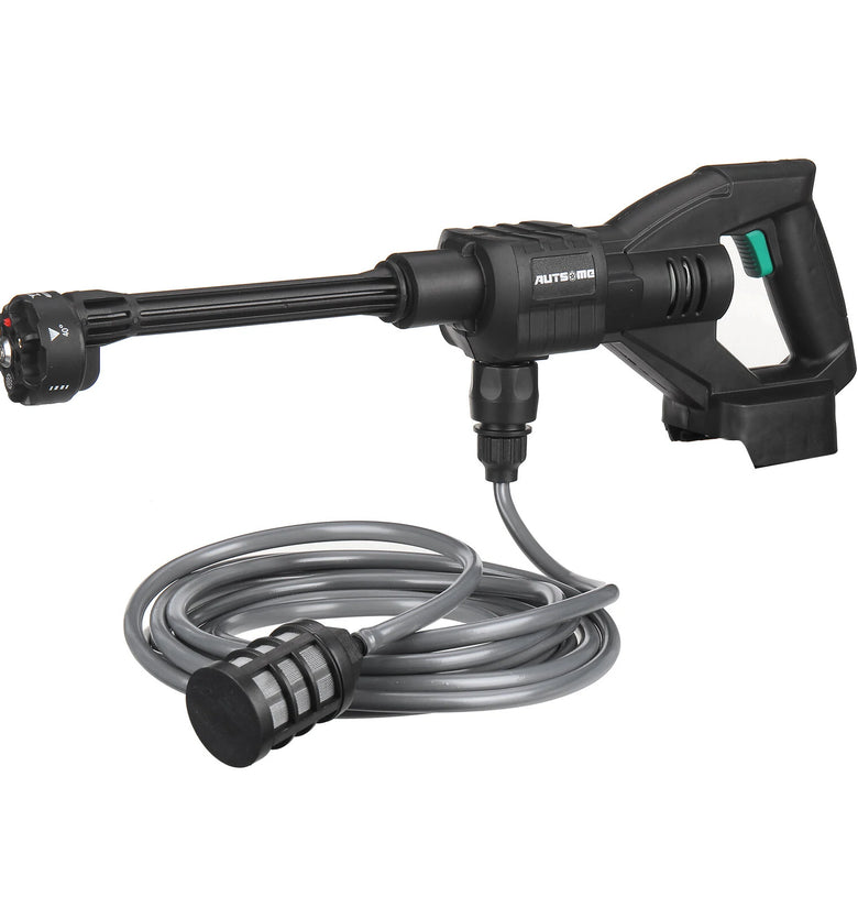 Features:--Powerful brushless motor, long-lasting power, strong energy storage and boosting capacity.--Strong water pressure 6-cylinder supercharged 20D power.--No rope car wash spayer, not limited by the site, easy and quick to operate.--6 in 1 adjustable nozzle, can adjust 6 different shapes of water splash.--Intelligent electronic control, High durability and strong endurance, no need to save electricity to wash the car Large capacity and long endurance, smooth operation without power failure, easy cleaning.--High-strength compression technology range up to 6~8 meters Long Range 6~8m.--Equipped with a foam bottle, it is more convenient to wash the car.--Very suitable for garden watering, agricultural irrigation, car washing, household cleaning, etc.--Not Incuding Lithium Battery.Specification:Brand: AUTSOMEModel: ST-7YS-550Colour: BlackMaterial: Nylon+ABSRated Power: 105WOperating Voltage: 21VLoad Current: 5ABattery Life Time: 20minMaximum Flow: 2.7/minWater Range: 6-8MPower Cord Length: 70cmInlet wire Length: 5MMaximum Pressure: 60barMotor cooling mode: automatic coolingCar washing equipment type: Household Car Washing MachineWater source type: Bucket / Bottle / Faucet Self-primingScope of application: Car washing, watering flowers, watering vegetables, spraying, garden cleaning, etc.Plug Type: US Plug / EU PlugSafety Warning:1. Mechanical impact on tissue cells is prohibited.2. The water sprayed by the water spayer has impact, please do not spray it on the crowd.Package List:1x Cordless Pressure Washer1x Removable Foam Bottle1x EU/US Charger1x 6 In1 Multi-function Nozzle1x Bottle Connector1x Hose Adapter1x Water Fitler1x 5M Long Water Hose1x ManualNote:1.Due to manual measurement, please allow a difference of 0.5-1cm.2. Due to the difference of light and screen, the color of the product may be slightly different from the picture.