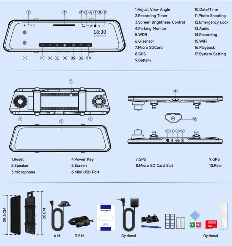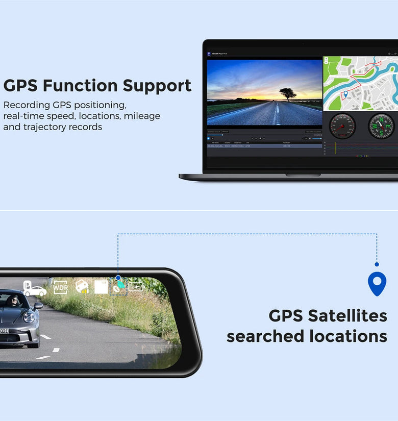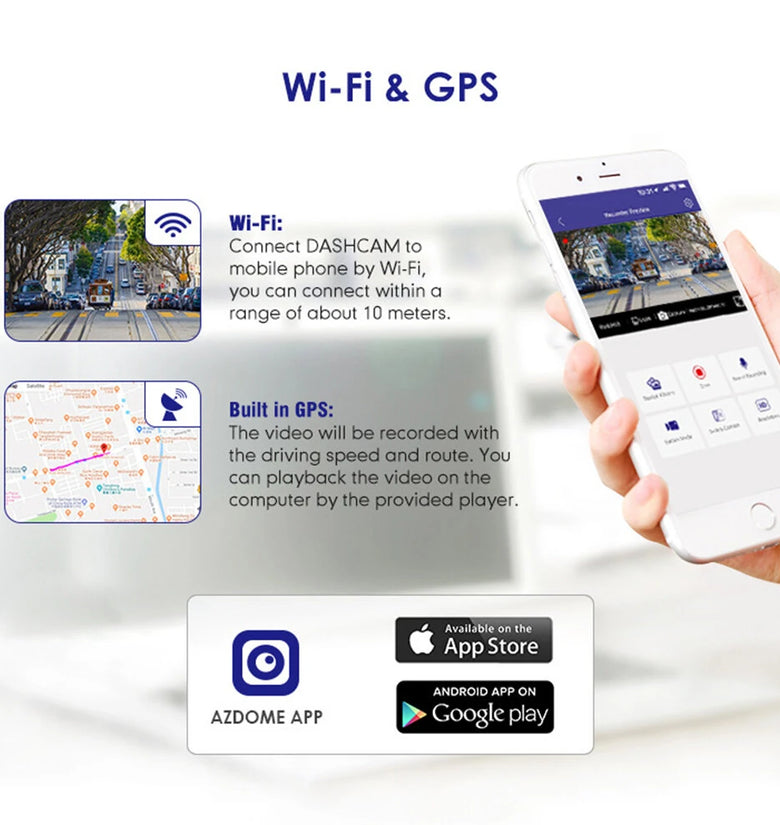 GPS & WiFi Support(Optional): Records driving routes, speed, and location while allowing wireless file transfer via the AZDOME app – simple and convenient connectivity.