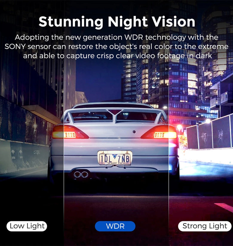 Enhanced Night Vision Technology: for Sony WDR sensor delivers high-definition video, even in low-light conditions, capturing every detail during nighttime drives.