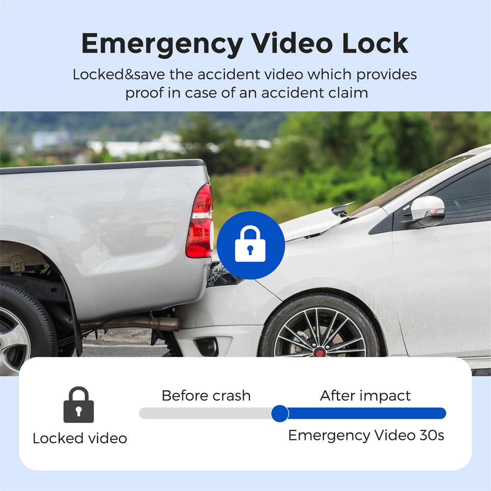 Parking Monitor & Emergency Lock: Automatically records impacts during parking scenarios and locks critical footage for your accident claims without overwriting files.