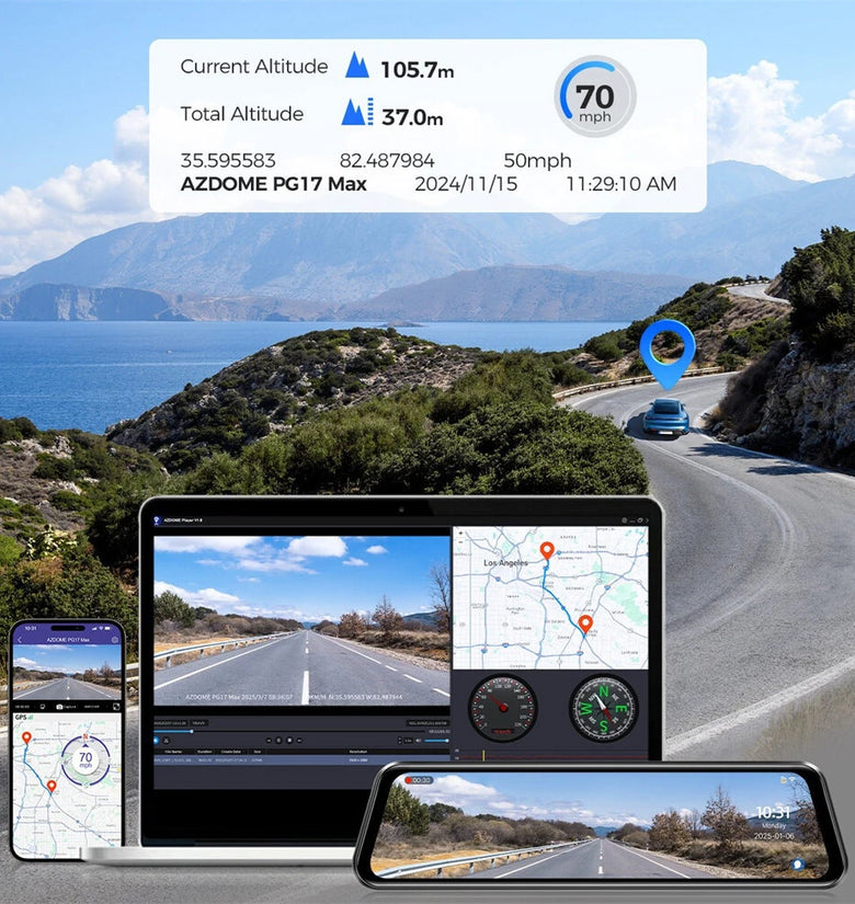• Azdome PG17Max Dual-Recording Dash Cam 4K UHD and 2.5K QHD Backup Camera 11.8Inch IPS Touchscreen Built-in GPS WiFi App Control ADAS Parking Monitor