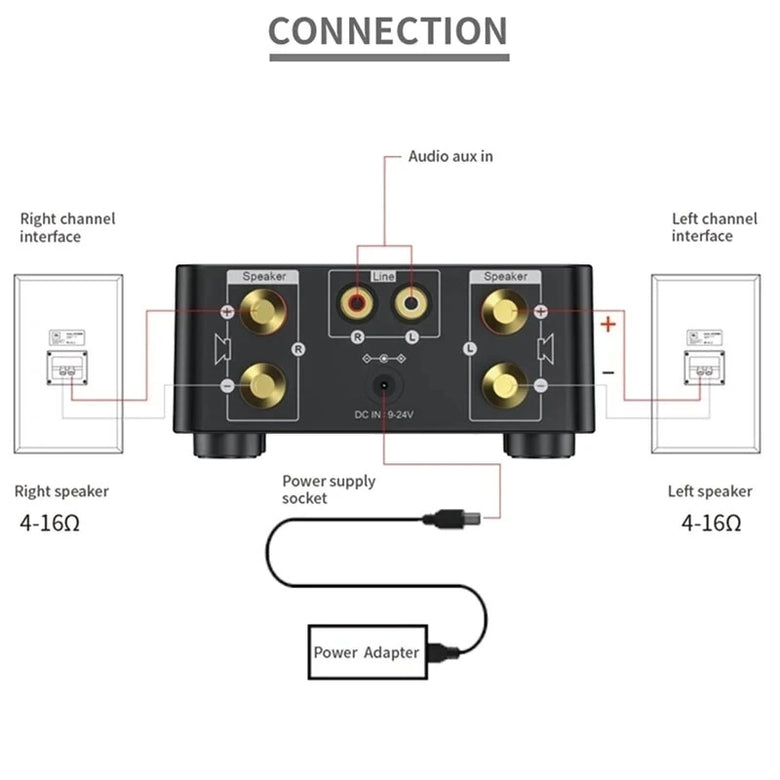 -- Hi-Fi sound quality, powerful and powerful, Hi-Fi sound quality is clear and crisp, no audible noise, our engineers have spent a lot of time and energy to optimize the circuit, no noise even at maximum output power.